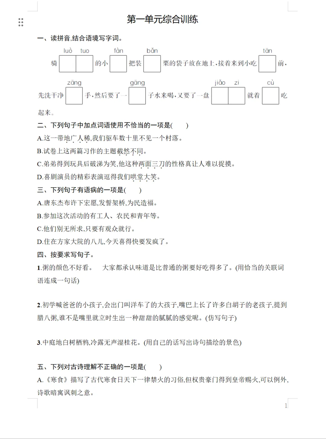 单元+期中+期末综合训练