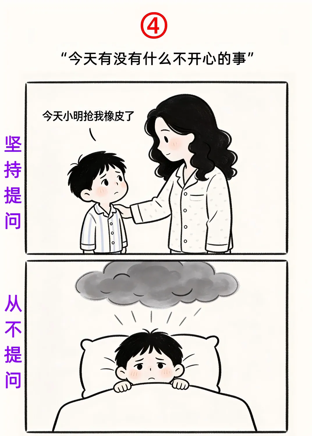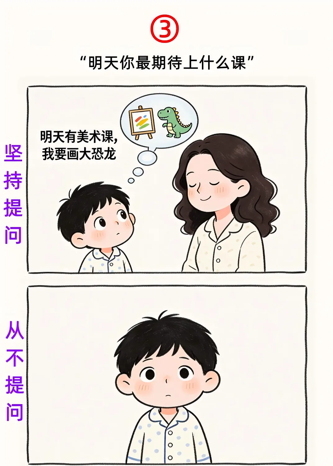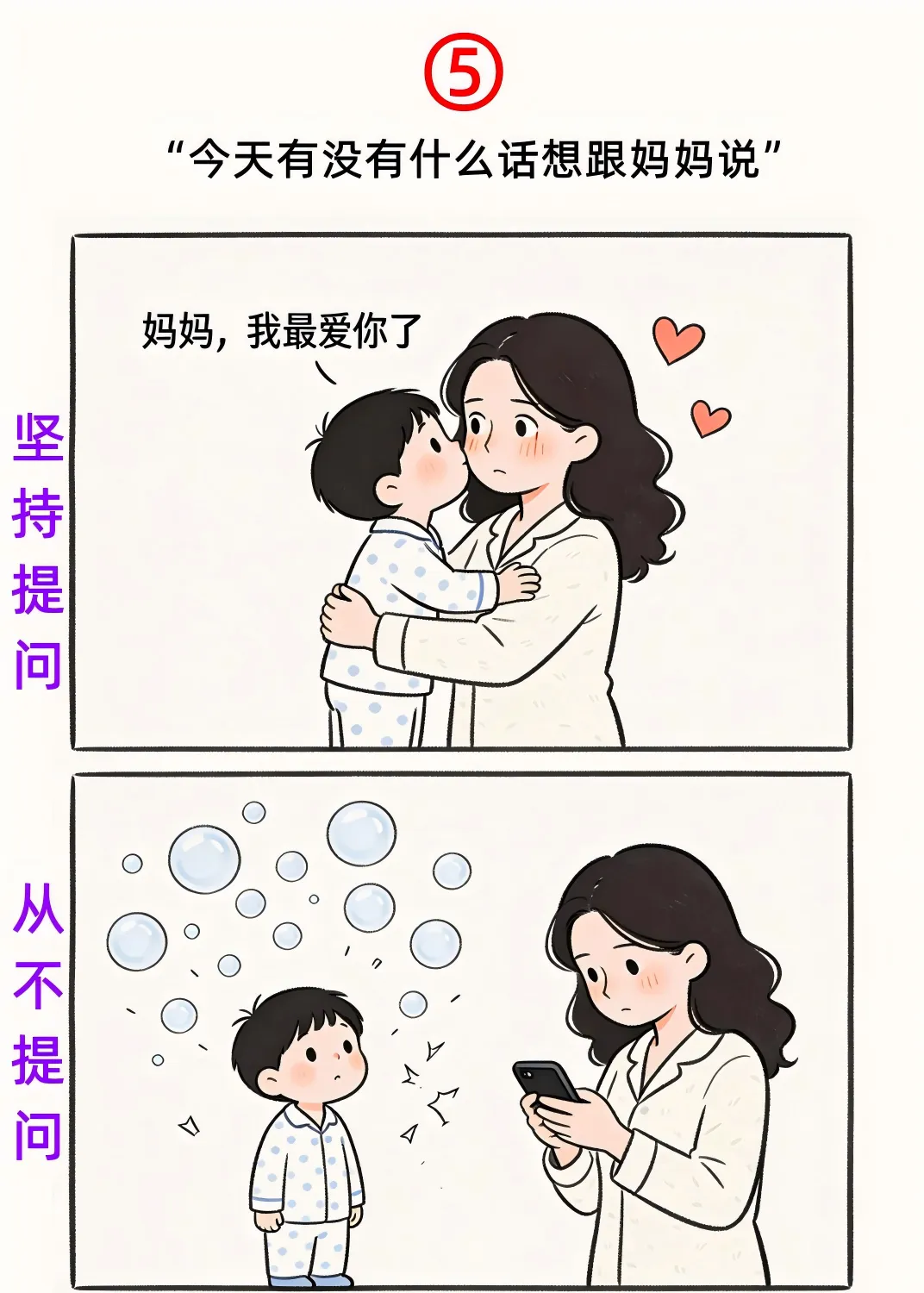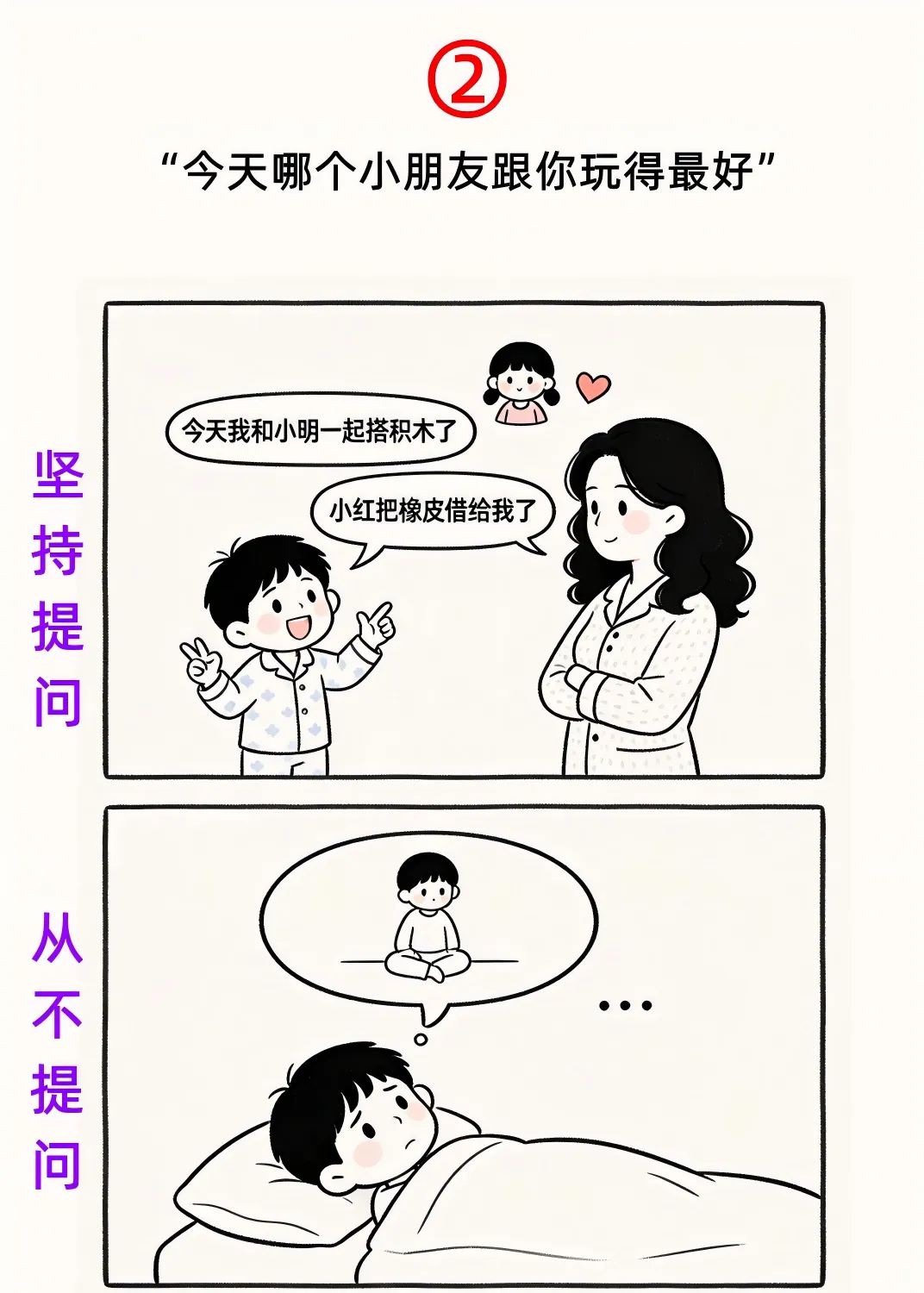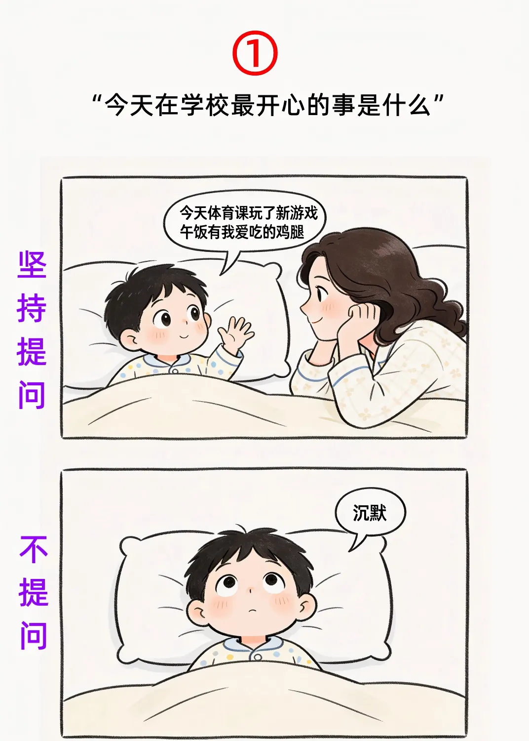 漫画:每天睡前10分钟,问孩子这5个问题,半年后变化惊人 睡前十分钟,问对了就是给孩子心里开了一扇窗。 他愿不愿意跟你聊,全看你愿不愿意听。 半年后你会发现,孩子什么都跟你说,这就是最大的惊喜。 今晚你准备问哪个?评论区聊聊吧!