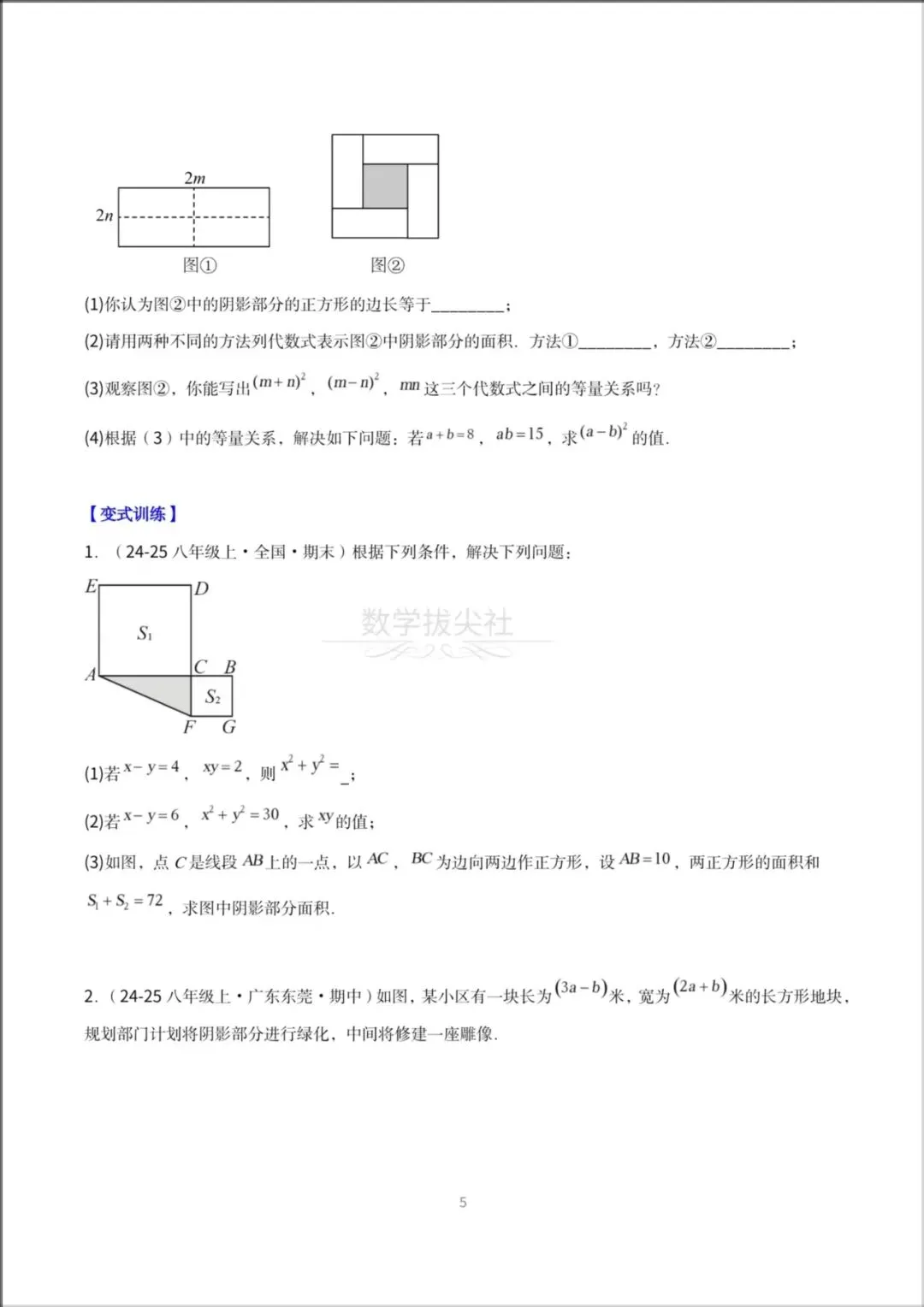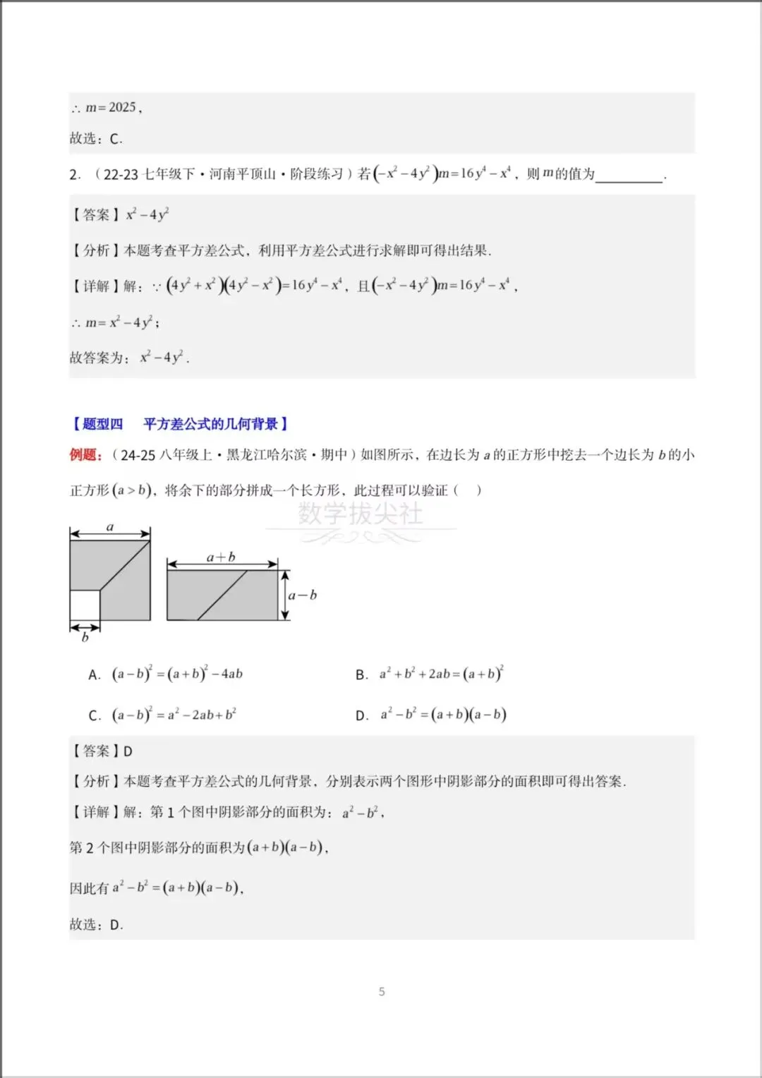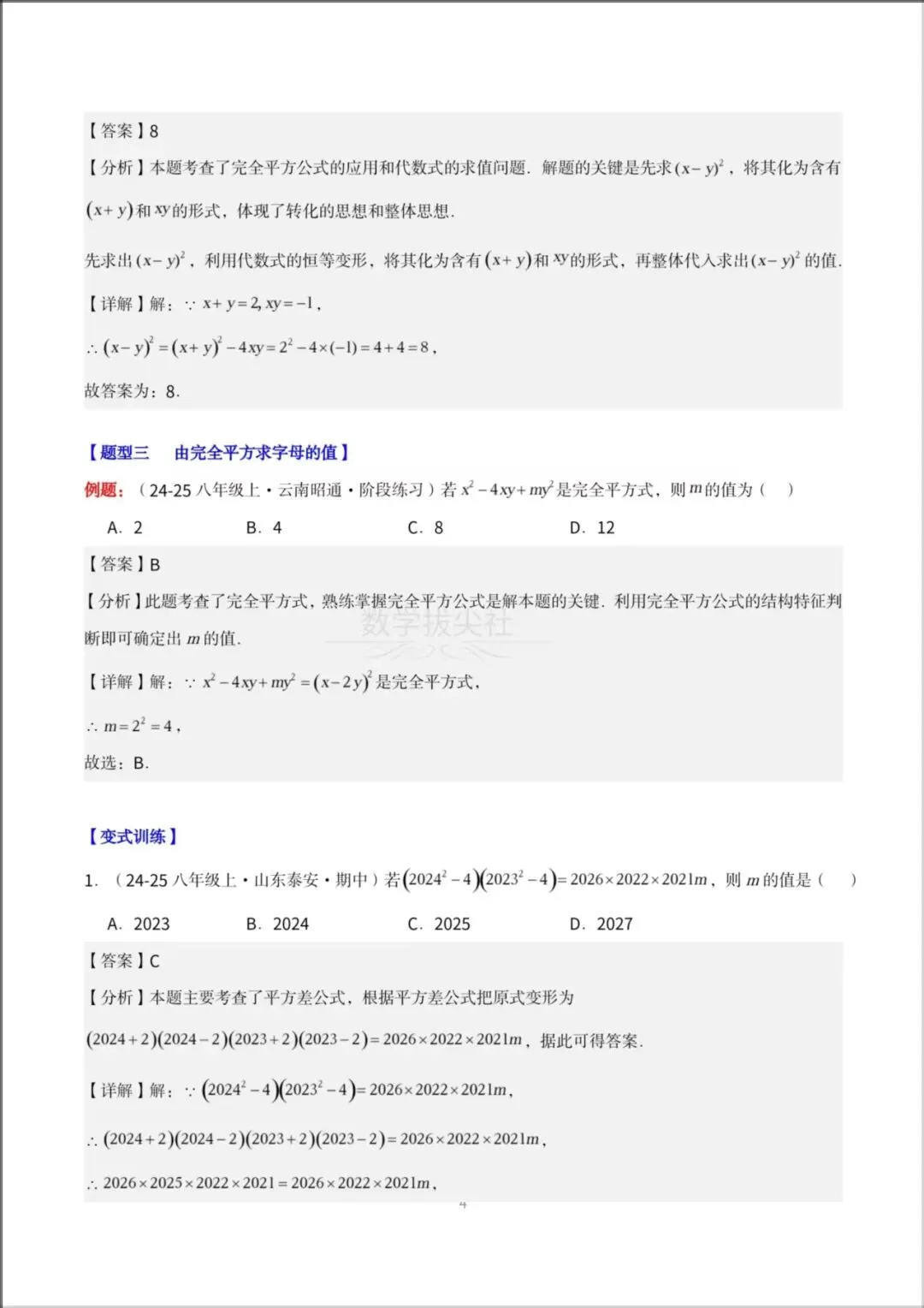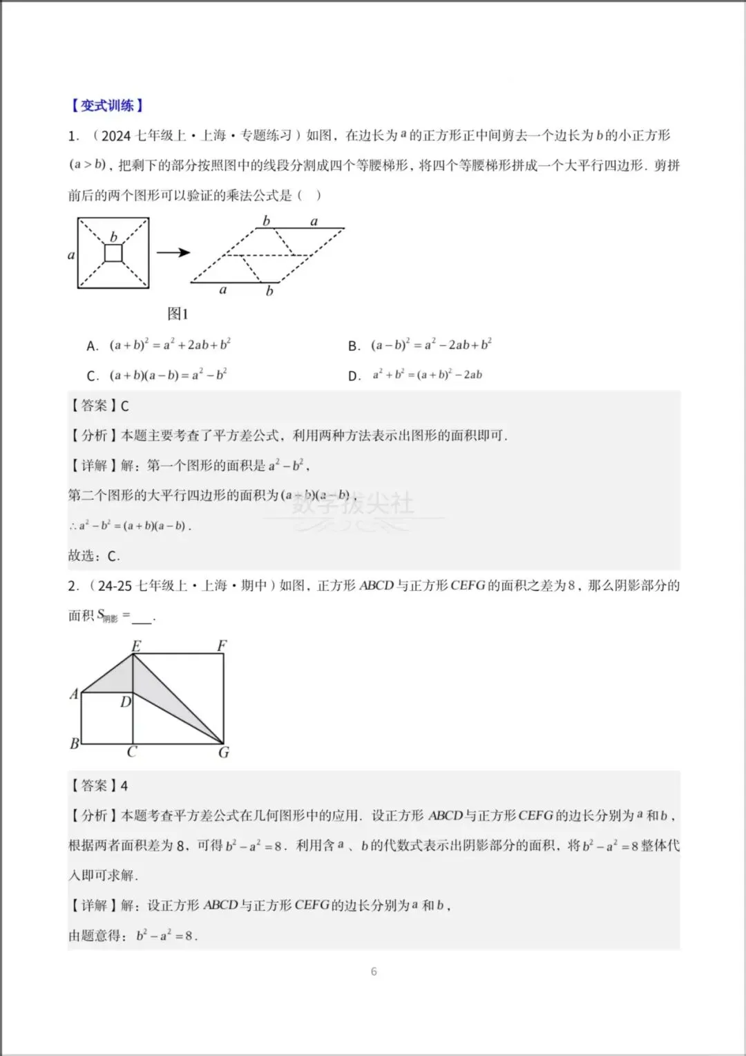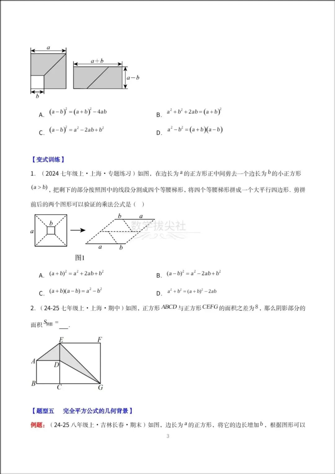 2026春新版教材【北师版】七年级下册〈数学〉专题《乘法公式》实验班培优过关训练(10种题型),有解析,可下载打印!