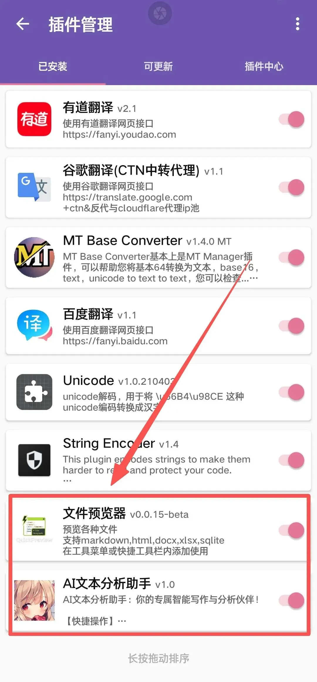 常用MT文件管理器的都知道,它是不支持直接读取markdown, html, docx, xlsx, sqlite文件的,那么现在这个文件预览器插件就派上用场了。