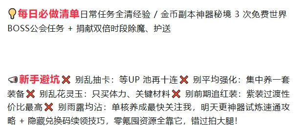 🎁礼包领取方式:在游戏登录页面领取 (角色4级之后再去领)(任务完成6个再领,否则邮箱看不到)输入对应CDK码即可领取丰厚奖励