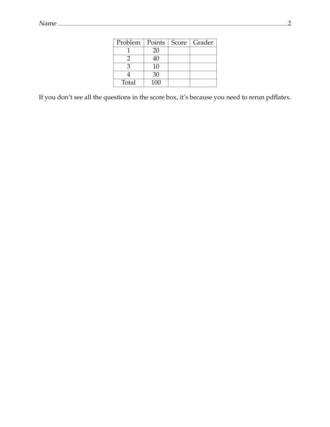 pdflatex myexampdflatex myexam # 第二次编译才能显示总分、题数等