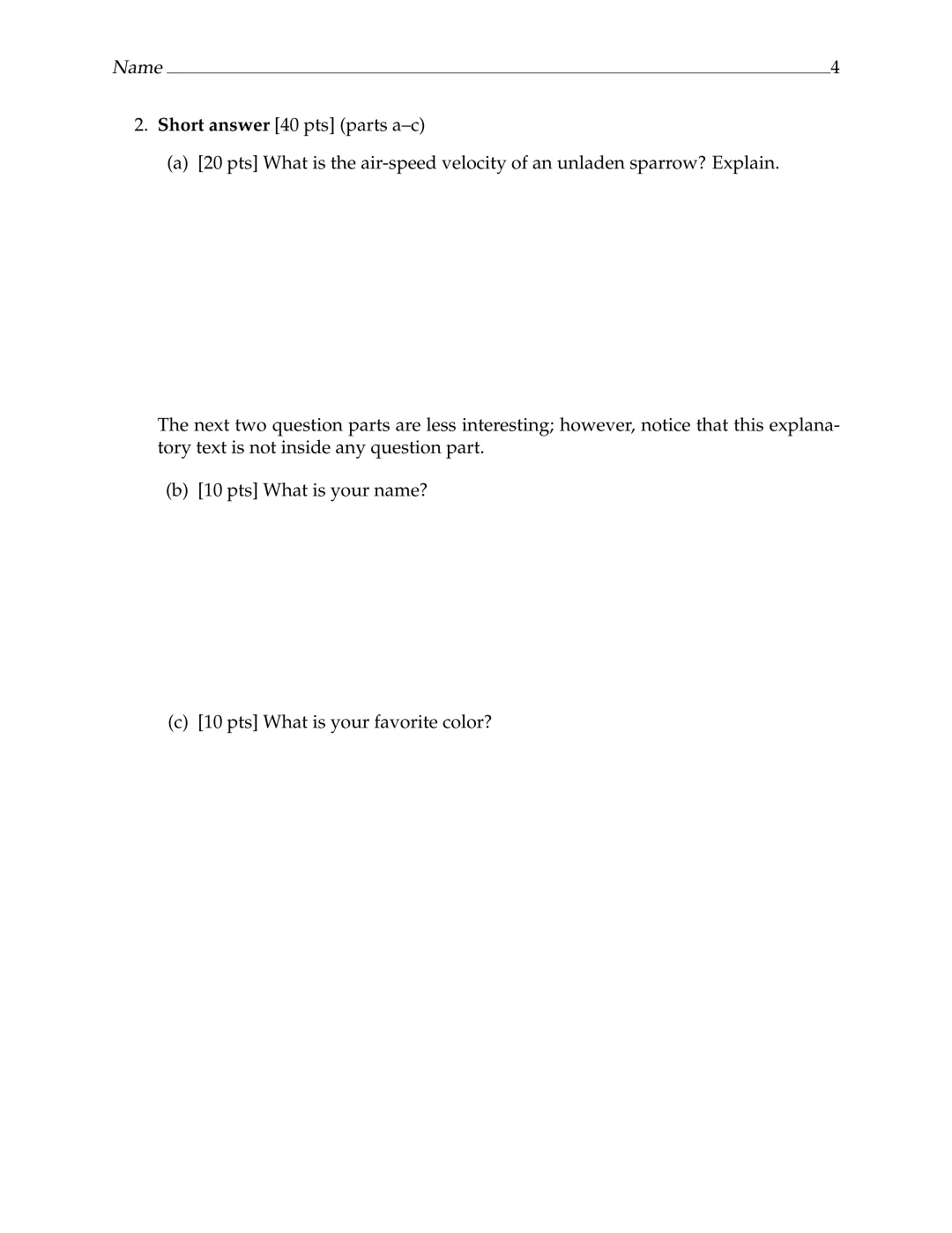\usepackage[instructions]{exam} % 学生版\usepackage[solution,boxanswers]{exam} % 答案版(带框)\usepackage[bluebook]{exam} % 答题册版