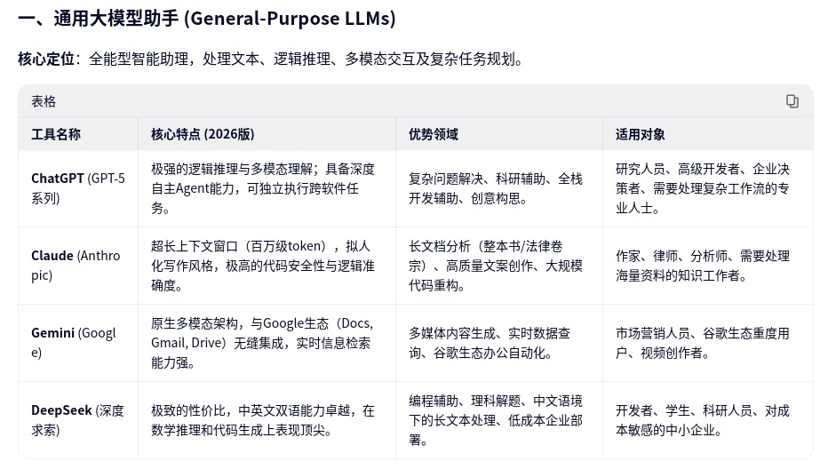 2026年主流AI工具