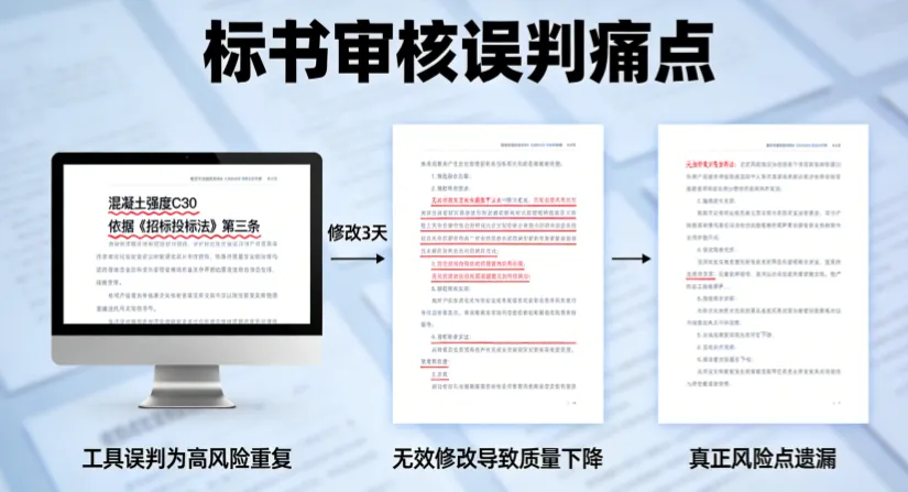 “混凝土强度C30”“依据《招标投标法》第三条”——这些明明是行业通用条款,却被一些工具标红为“高风险重复”。你花几天时间修改,结果改完之后标书质量反而下降,真正的风险点却漏掉了。