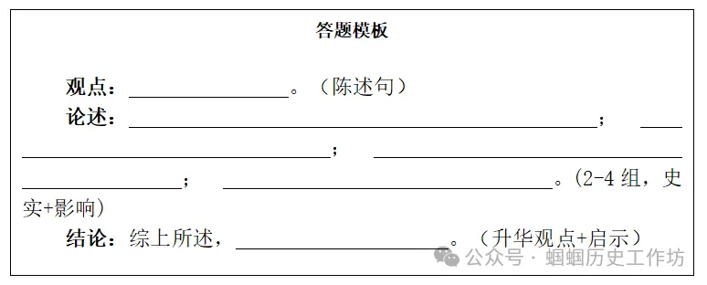 找出材料开头给予的核心关键词(人名、地名、特定名称、专有名词、历史事件、出处等),加连接词(促进、有利于、加快、推动、适应……),组成观点,即一句肯定式的陈述句。