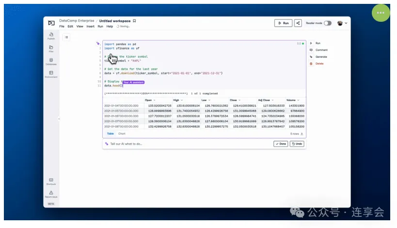 DataLab 是一个基于云的 Jupyter Notebook,使用最新的 AI 技术帮助用户生成见解、编写代码、调试和自动补全。它还可以在几秒钟内识别错误并提供解决方案,这意味着通常需要专业数据科学家数小时完成的数据分析报告,现在只需几分钟即可完成。