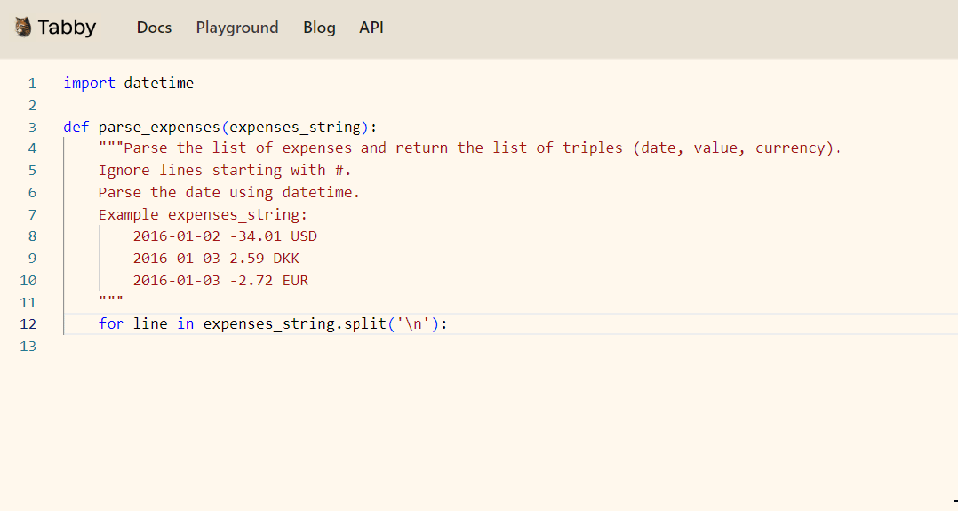Tabby 是一个可以使用 Docker 托管在本地机器上的 AI 编码助手,提供开源和本地化的 GitHub Copilot 替代方案。