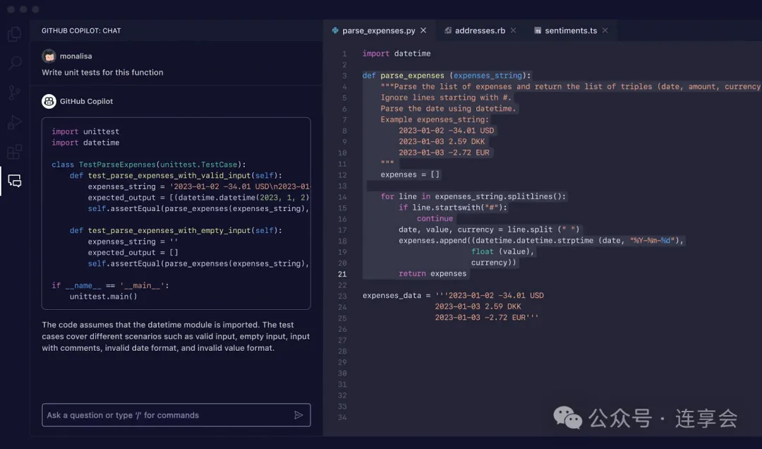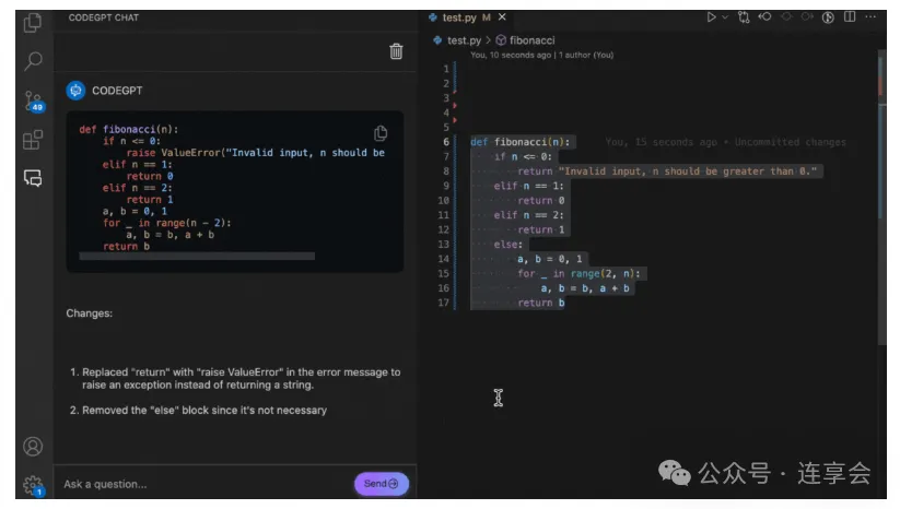 代码重构:AI 编程助手可以帮助你清理代码,使其更易读。它可以生成文档字符串、添加注释、格式化代码、生成单元测试等。 -