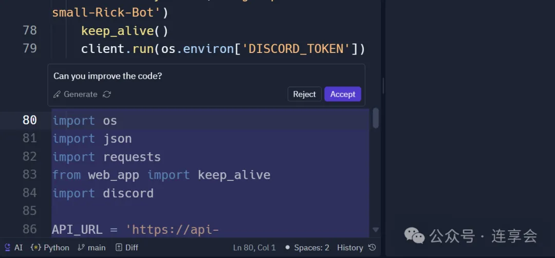修复错误:如果你在运行代码时遇到错误,AI 助手可以帮助你快速诊断并修复问题。