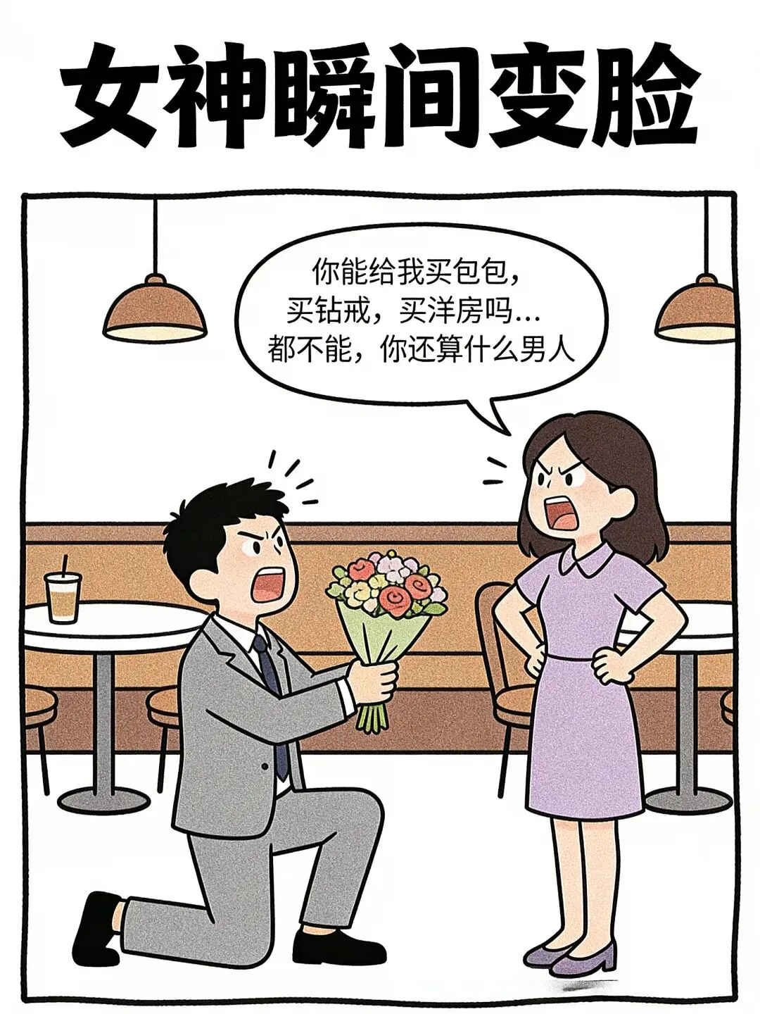 逗笑漫画:我:你喜欢什么样的男人?女神:是个男人就行.我:那你看我行吗?女神:这点要求都满足不了,你算什么男人
