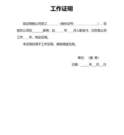 工作证明模板文件【word可编辑】免费下载