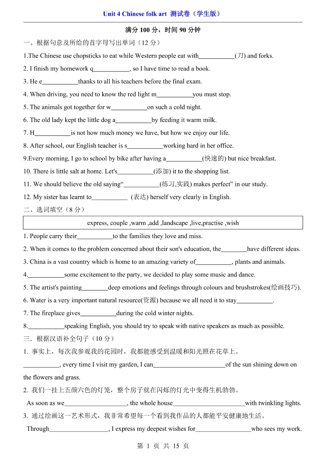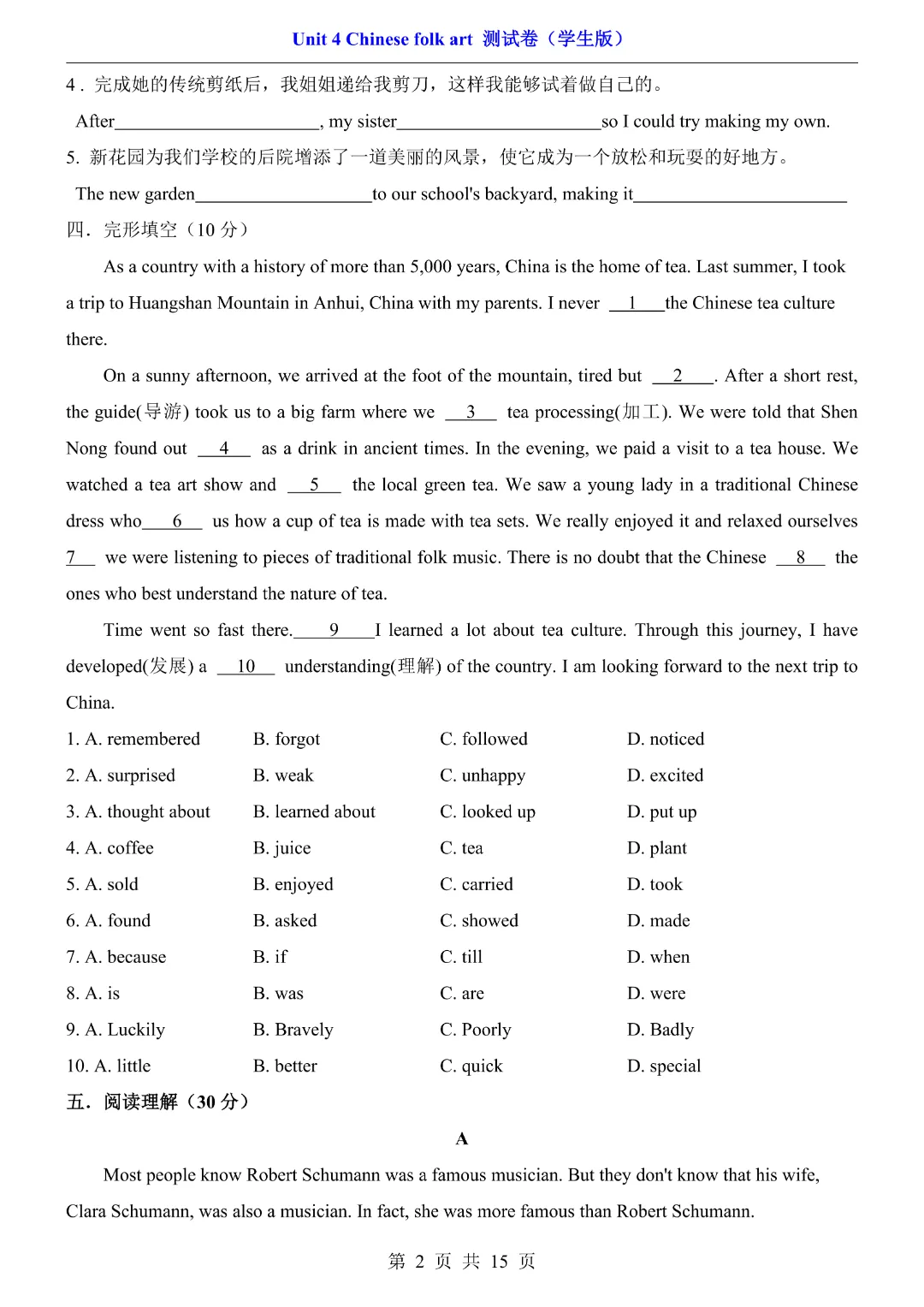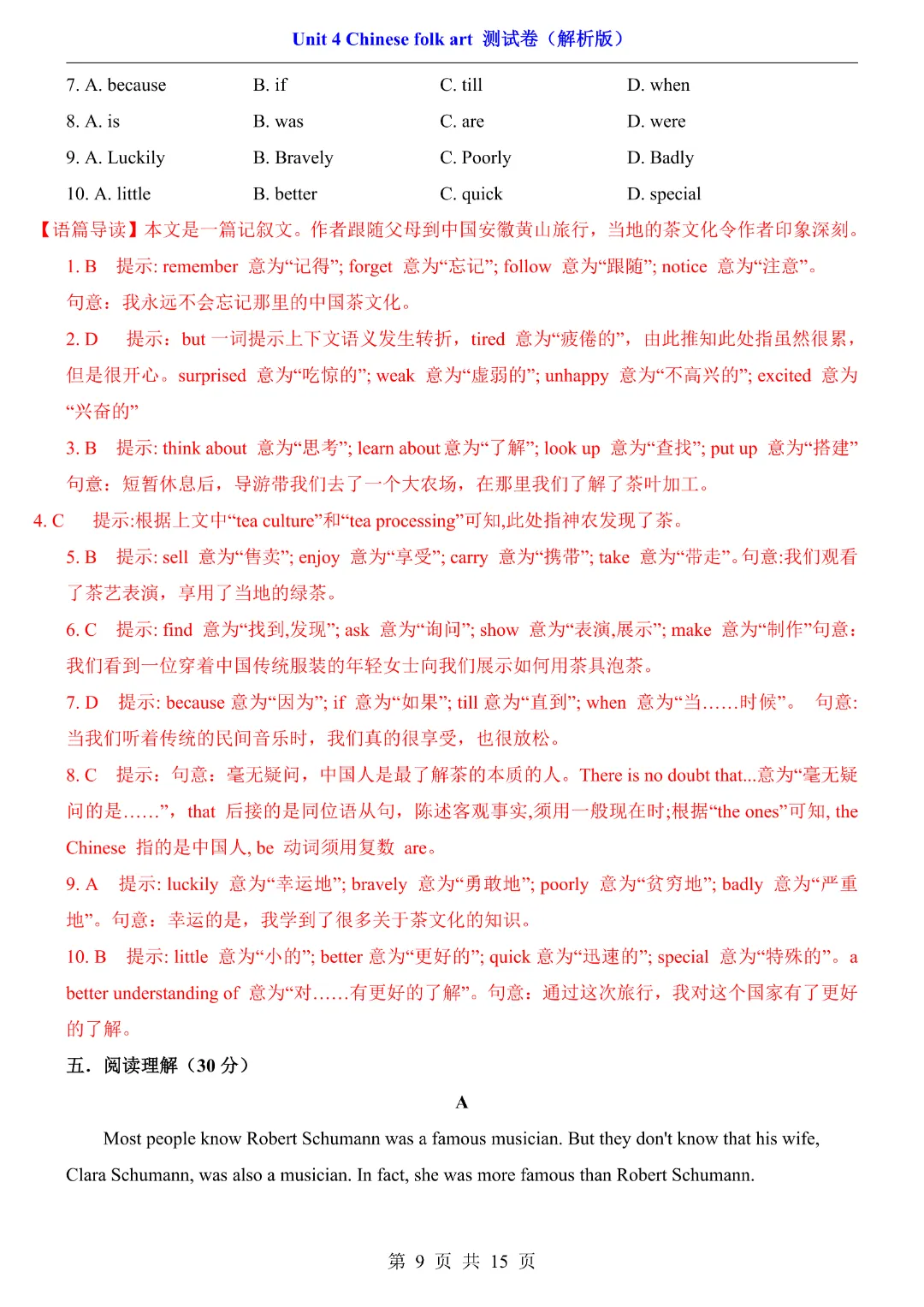 【七年级下册英语】【译林版】第四单元Unit4 测试卷带答案丨完整电子版可打印