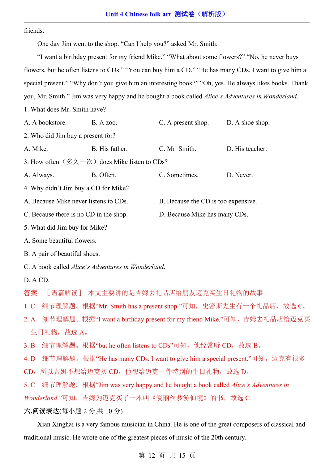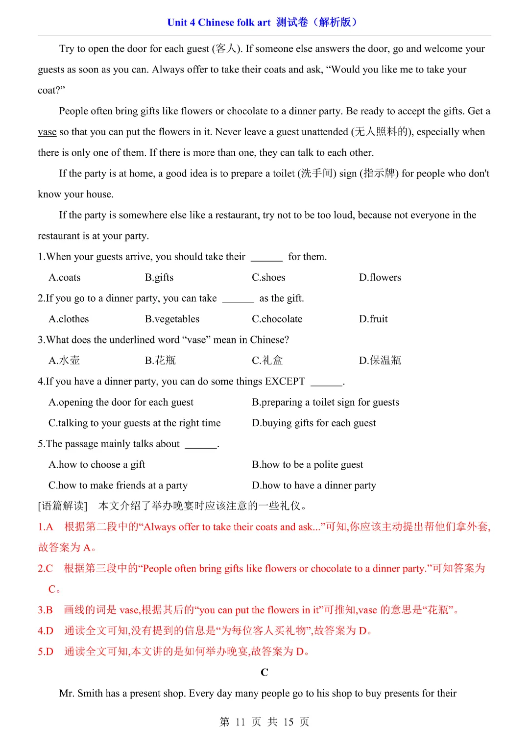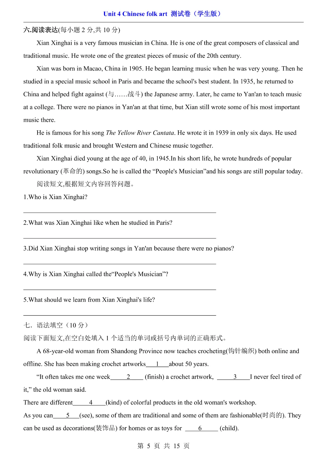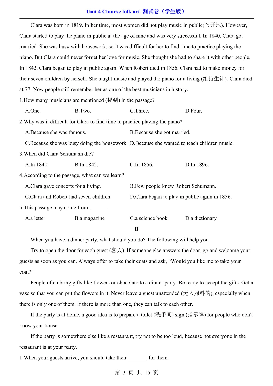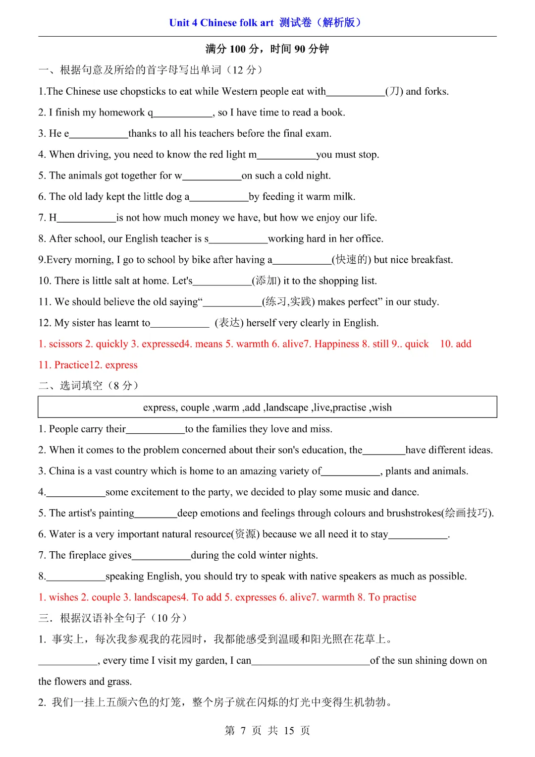 【七年级下册英语】【译林版】第四单元Unit4 测试卷带答案丨完整可打印