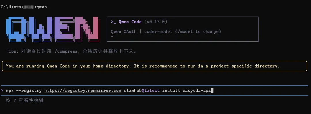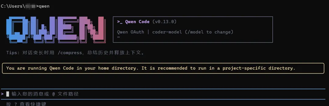 命令行直接输入,我使用的是qwen,也可以使用Claude类似的AI工具,下载完成之后,检查版本