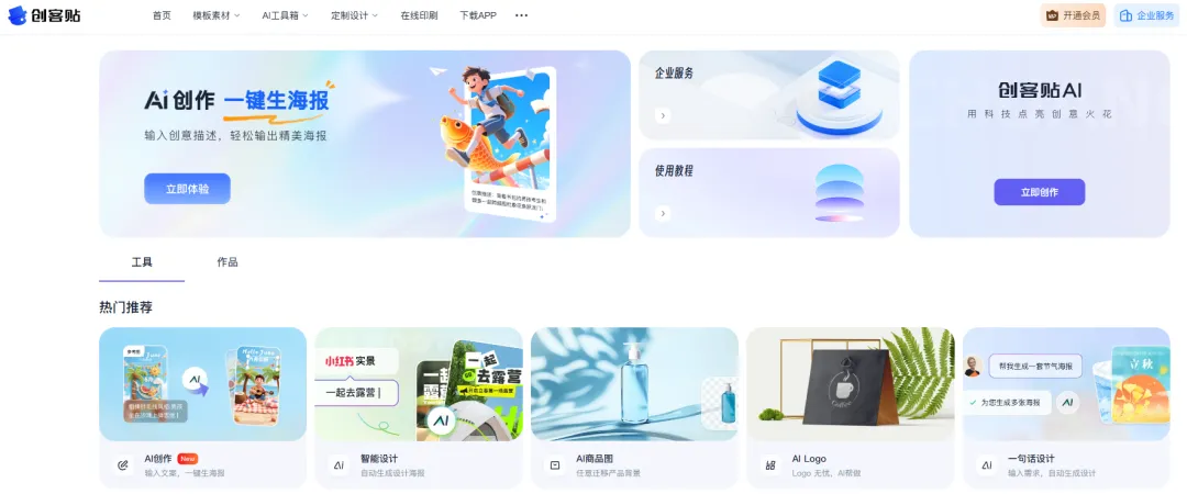 获取方式: 网页版/App搜索“创客贴”,AI功能部分免费,基础模板足够日常使用。