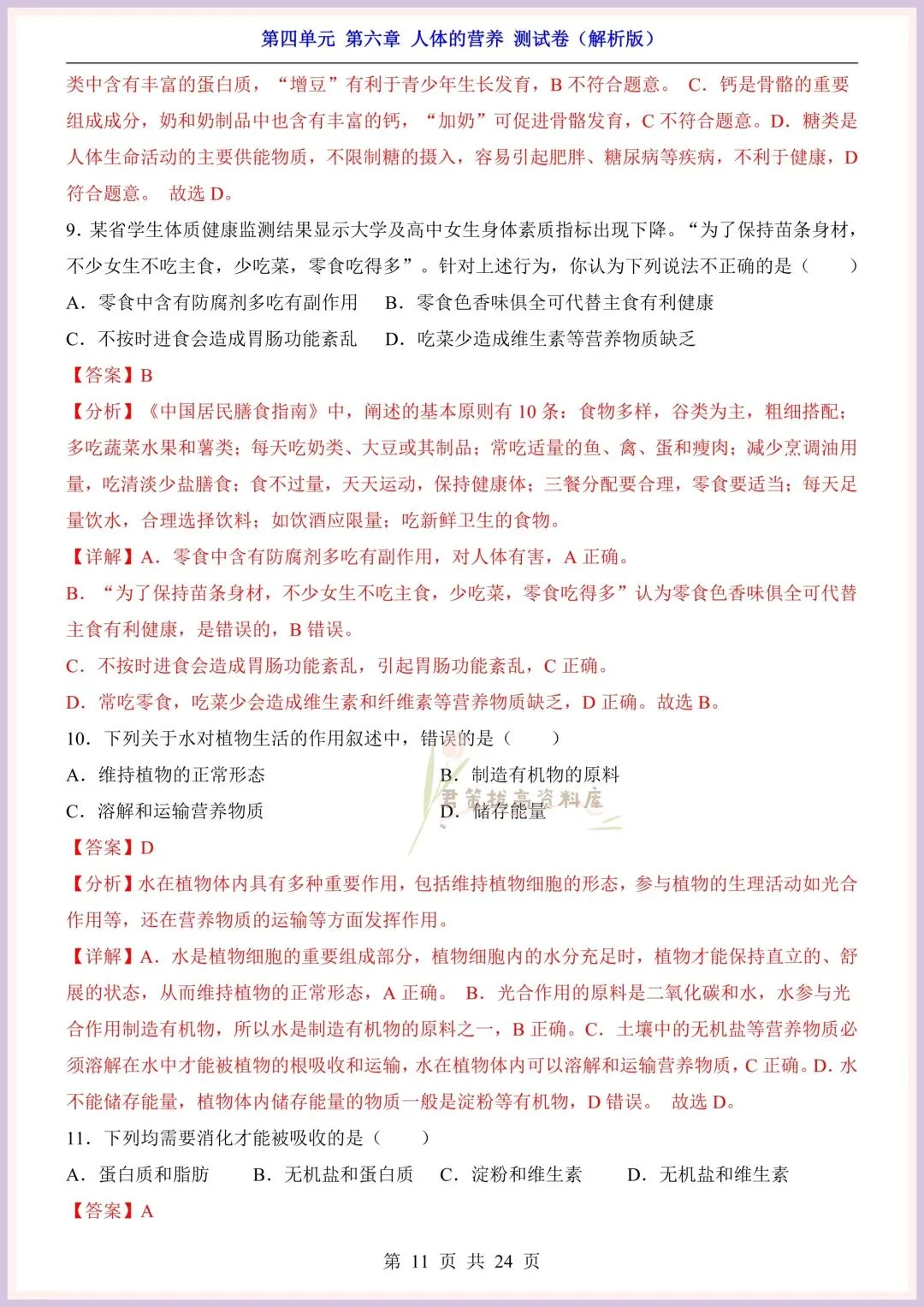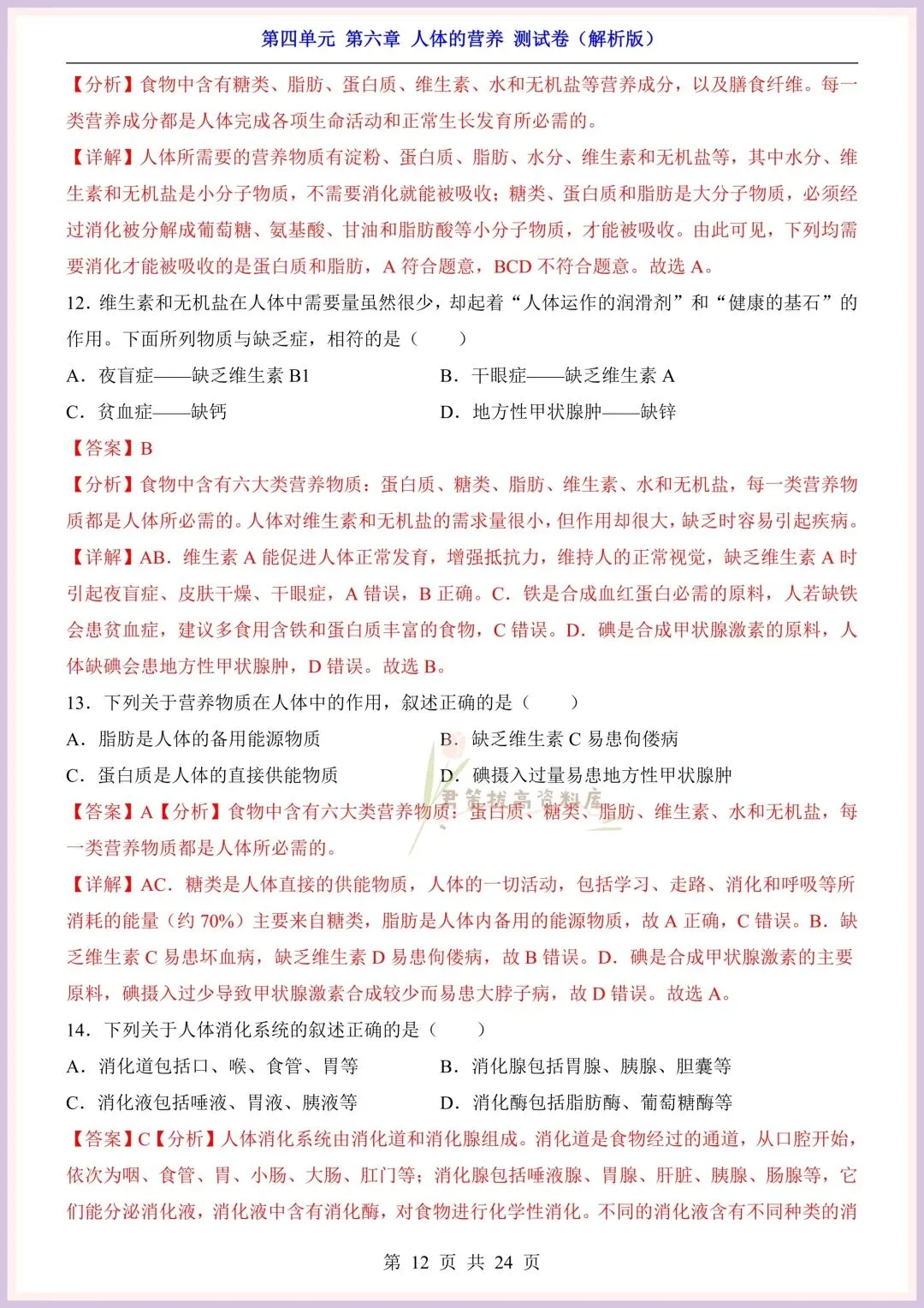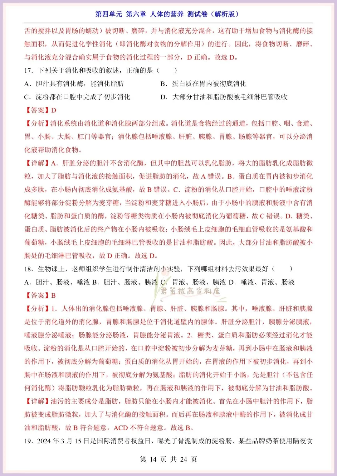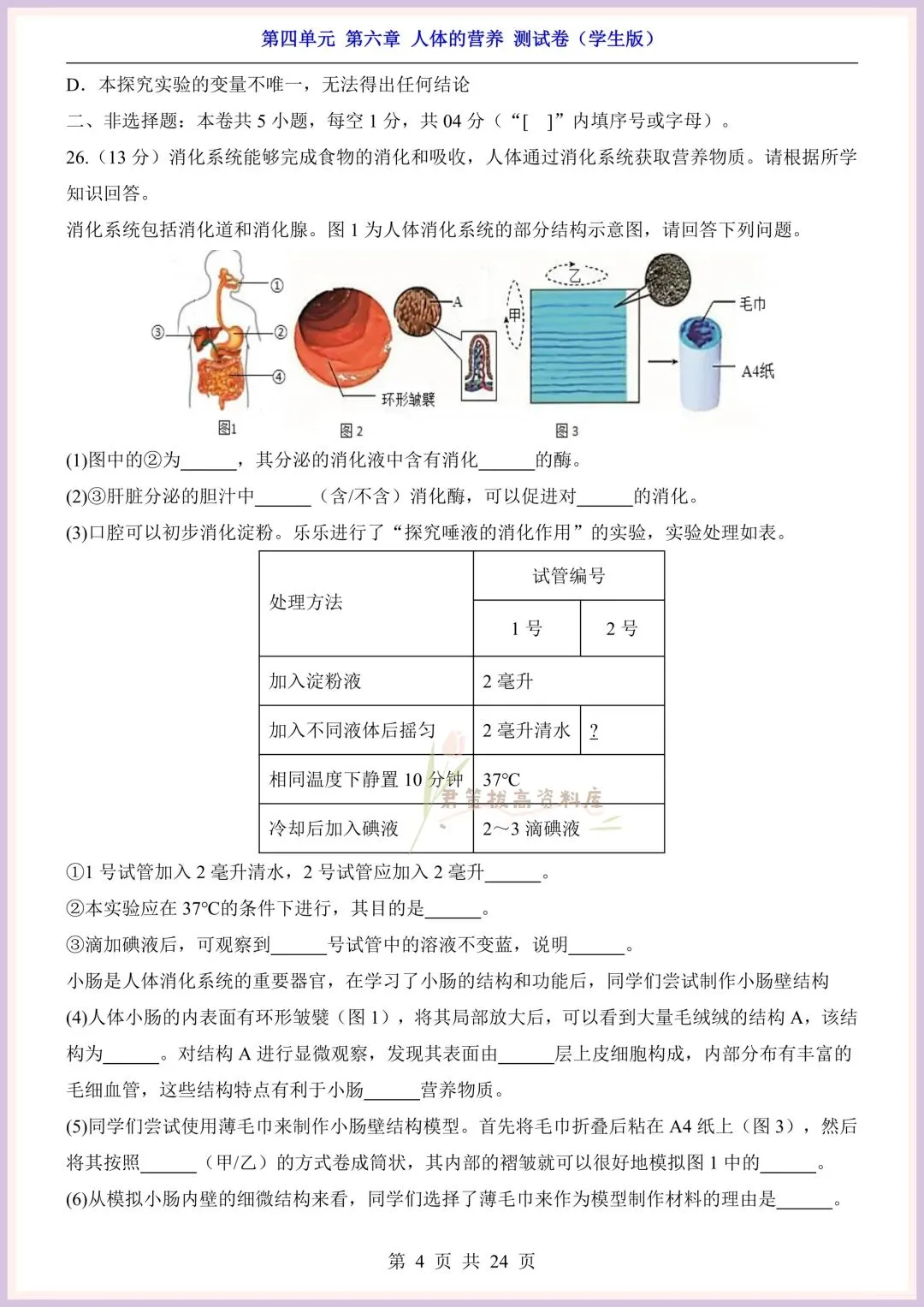 今日老师精心给大家整理了:新版教材|2026新(北师大版)七年级下册生物第4单元第六章单元测试卷+一课一练(同步练习),附详细答案解析,完整电子版可打印!