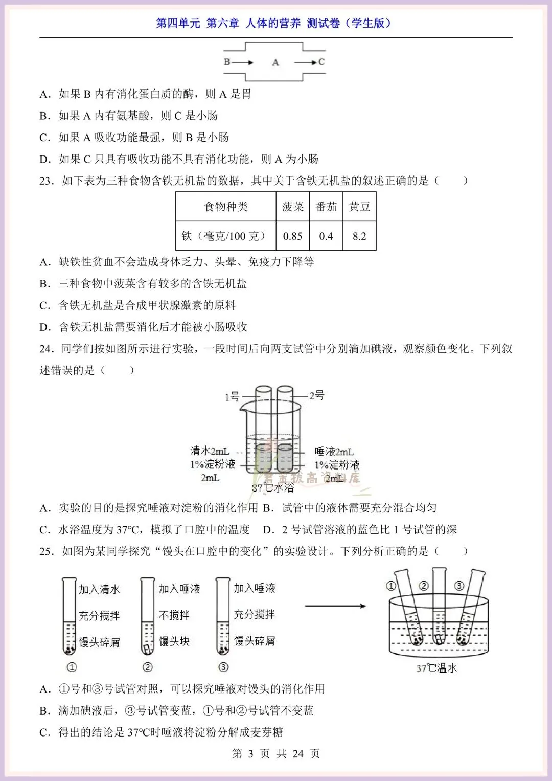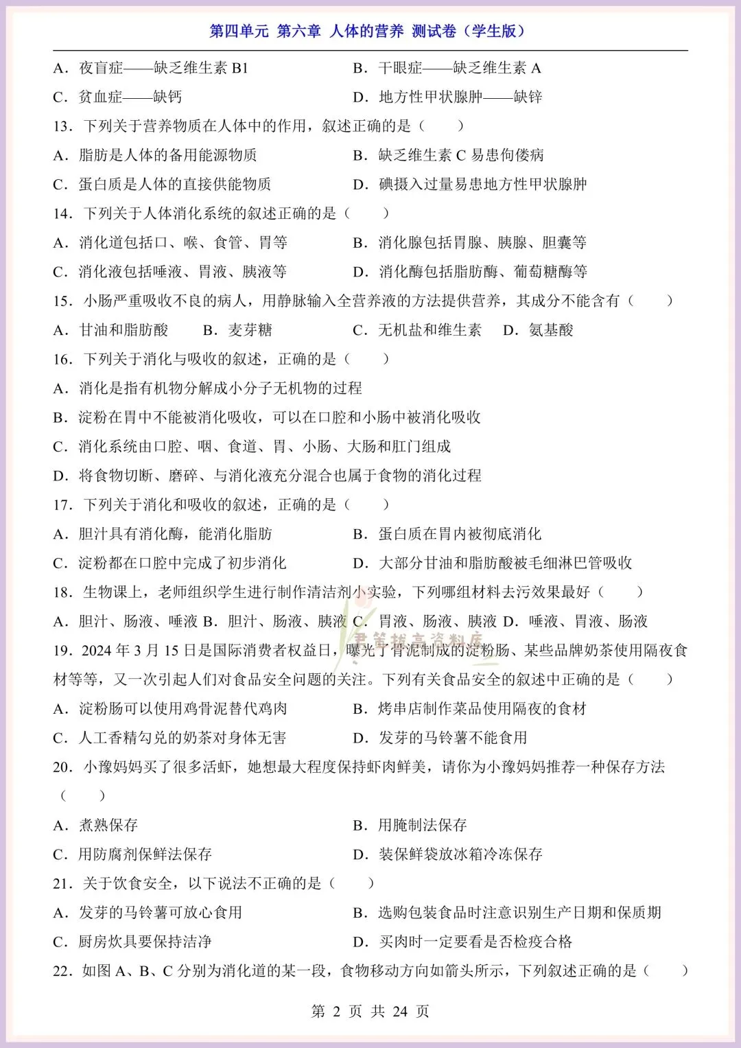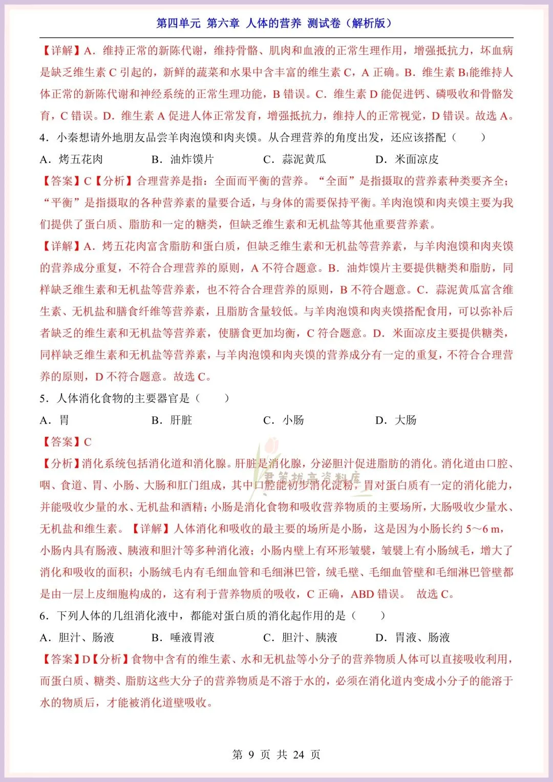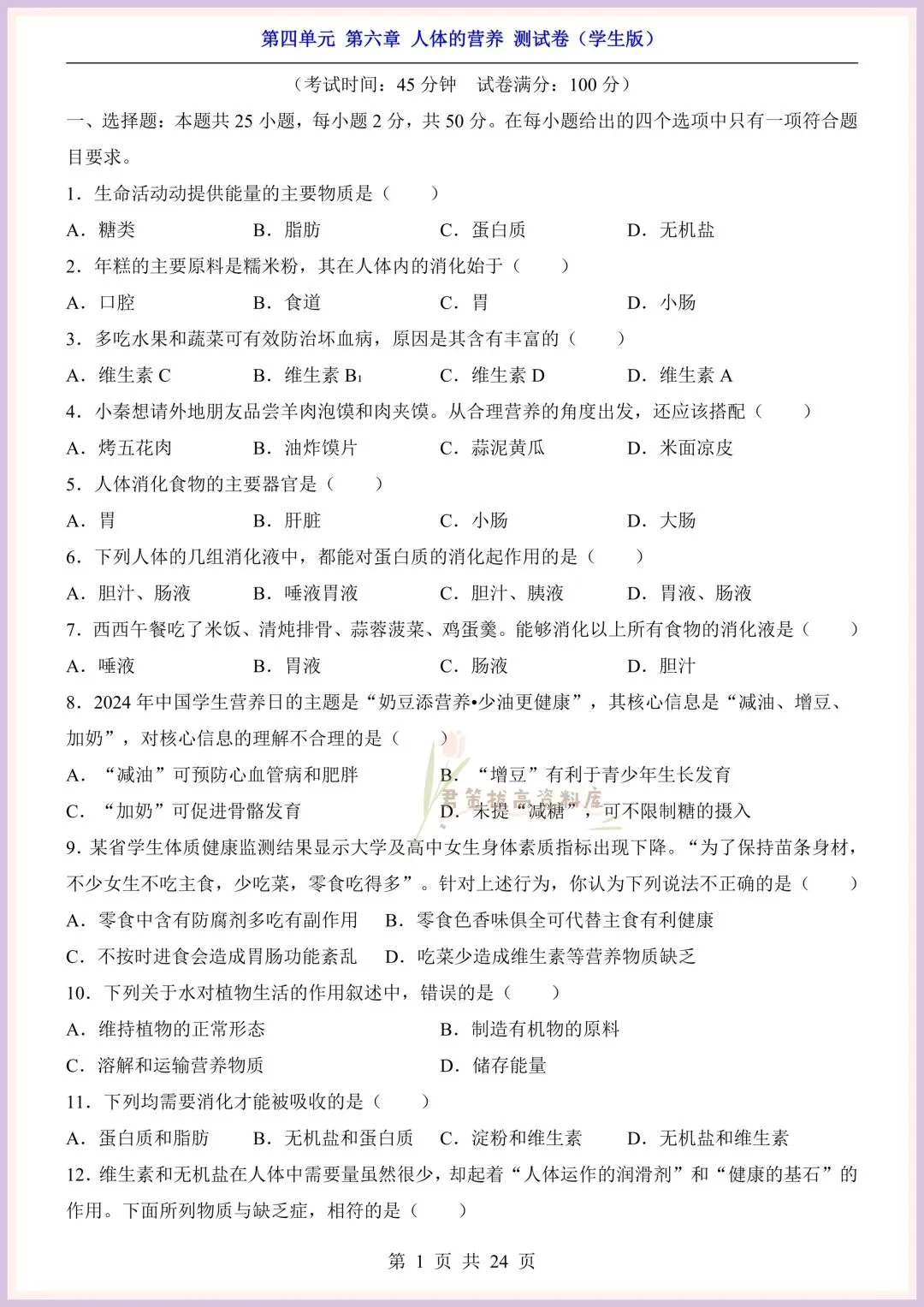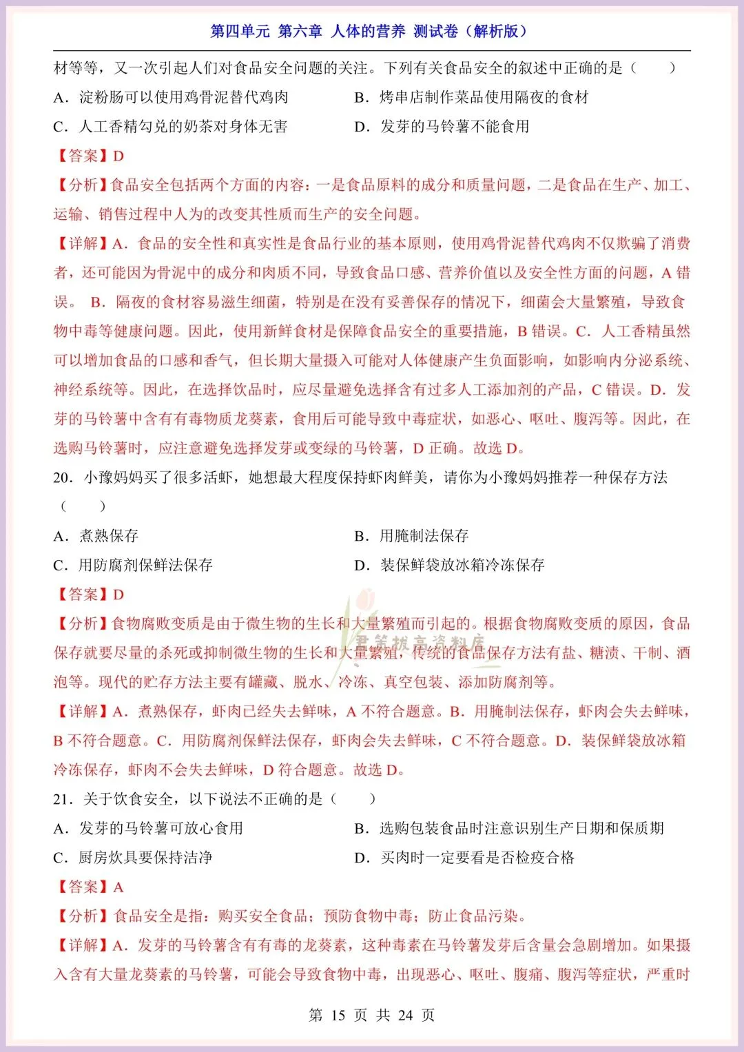 今日老师精心给大家整理了:新版教材|2026新(北师大版)七年级下册生物第4单元第六章单元测试卷+一课一练(同步练习),附详细答案解析,完整电子版可打印!