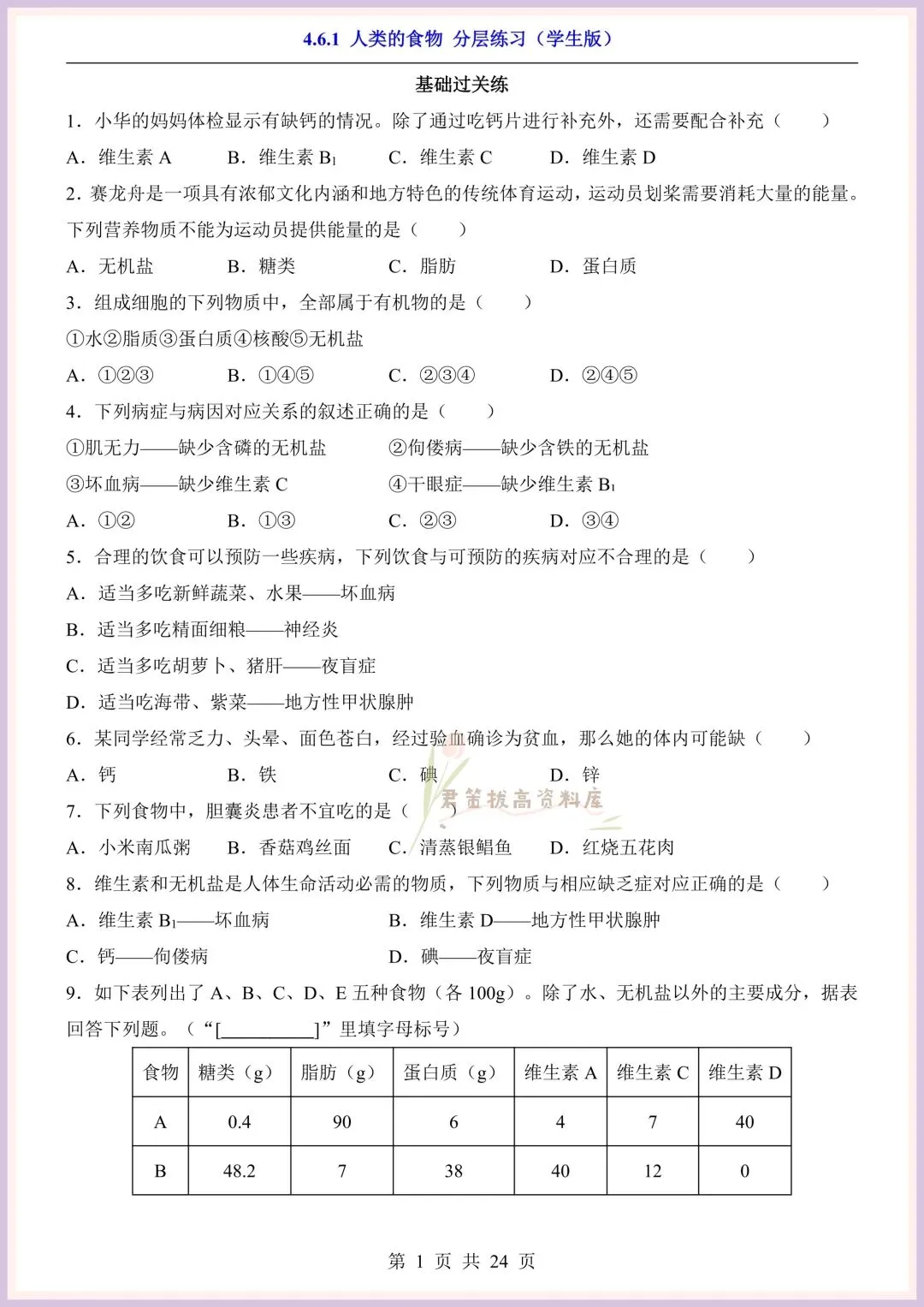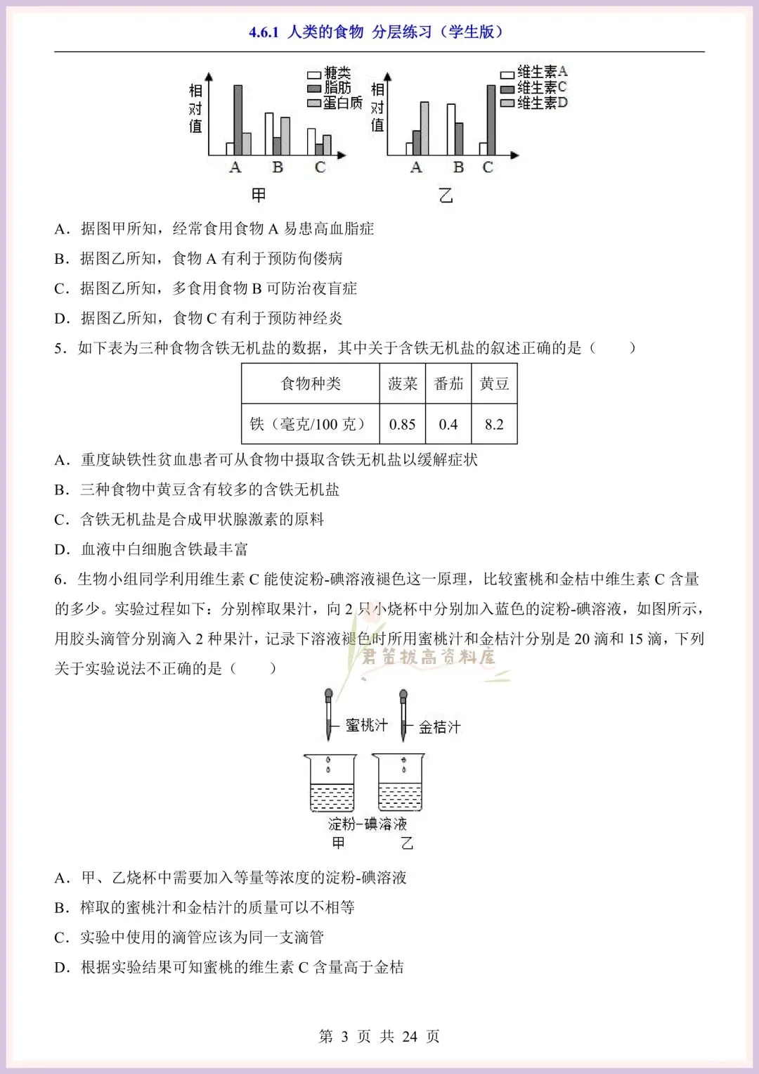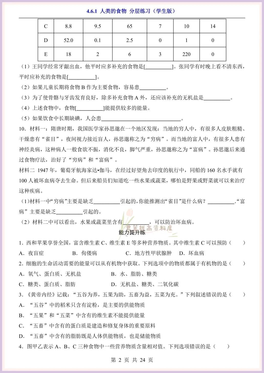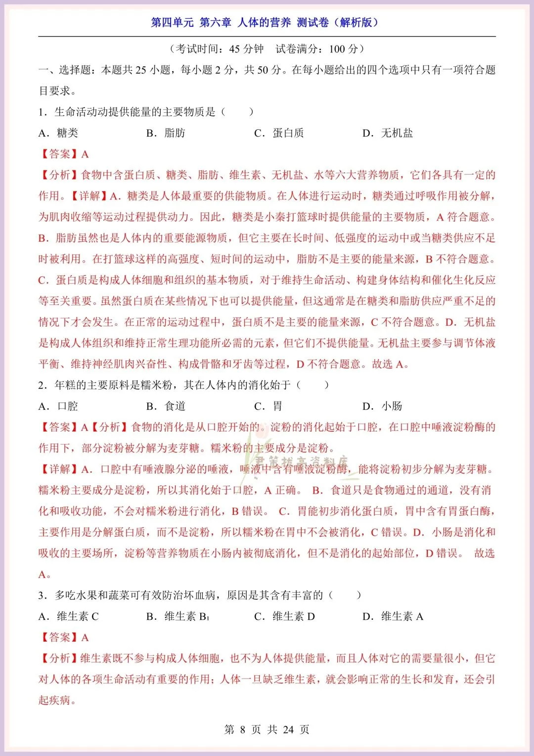 今日老师精心给大家整理了:新版教材|2026新(北师大版)七年级下册生物第4单元第六章单元测试卷+一课一练(同步练习),附详细答案解析,完整电子版可打印!
