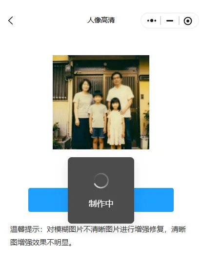 第三步:等待AI处理点击修复按钮后,只需要等待几秒钟。这个过程真的很神奇,你能亲眼看着照片从模糊变清晰。