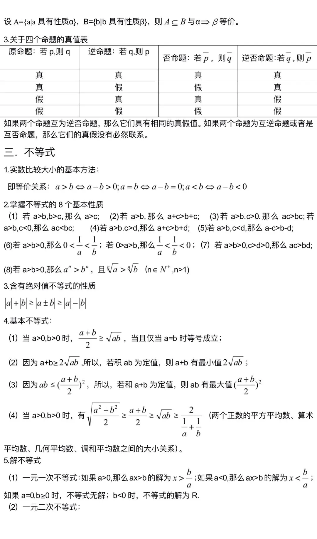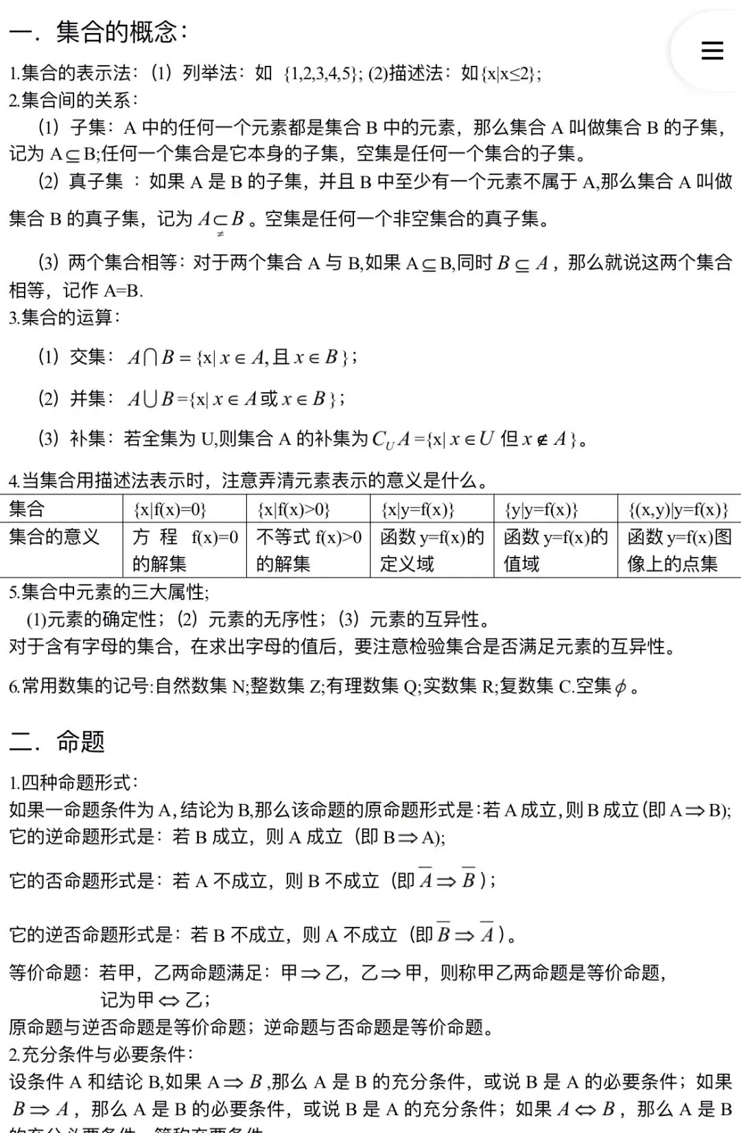 高中数学概念汇总(可打印) 土豆为同学们准备资料,系统梳理高中数学集合,命题,不等式,函数几大板块,涵盖定义,性质与解题方法。从集合运算到函数单调性,归纳核心结论和技巧,帮助同学们打好基础,构建完整知识体系!! 高中通用 建议人手一份!!! 篇幅受限 仅分享部分~ 领取方式 点击下方名片 关注即可领取???