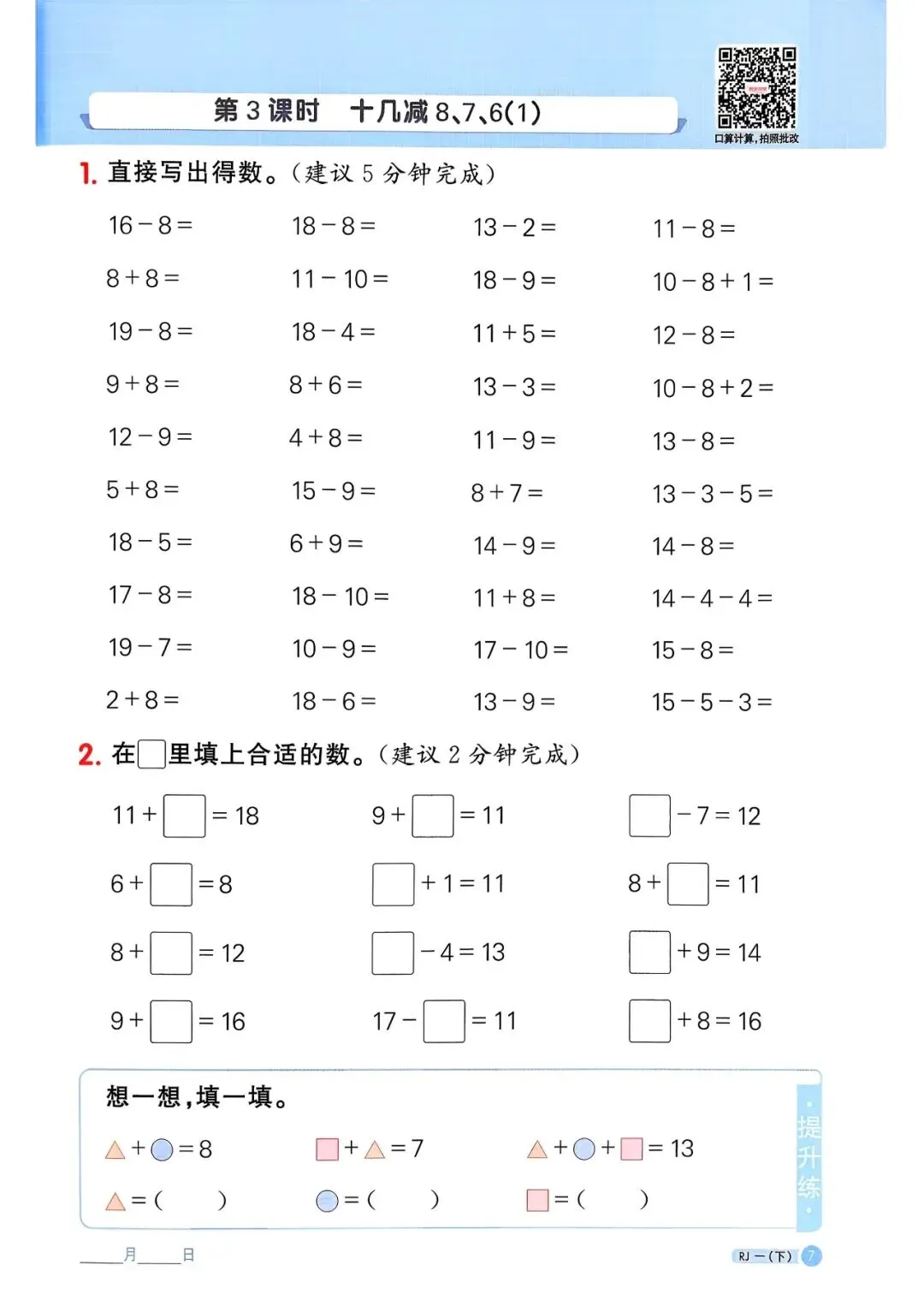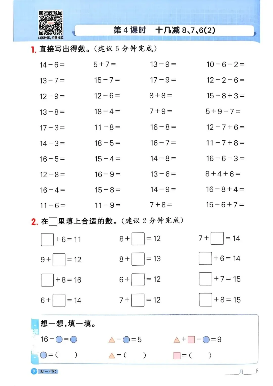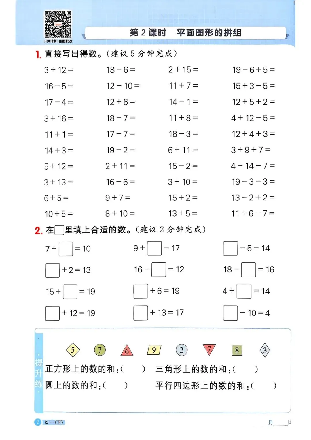 26春1-6下册数学下数学《阳光计算小大人》(同步课本)