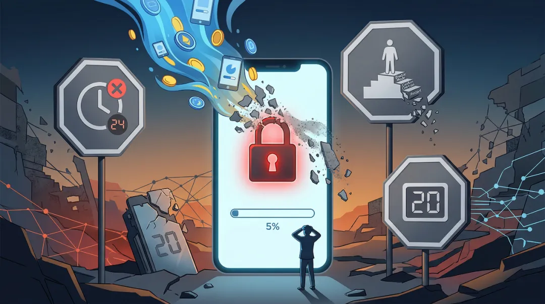 这套机制通过制造极端的物理摩擦,彻底切断了直投买量的利益闭环。在快节奏的移动端环境中,要求用户去苦等 24 小时,玩家的冲动情绪被消耗殆尽,遗忘率垂直拉升。对于依赖独立包切支付的开发者而言,前端投放的真金白银将在这漫长的等待期中变成无效损耗,侧载链路的实际转化率面临底层停摆。