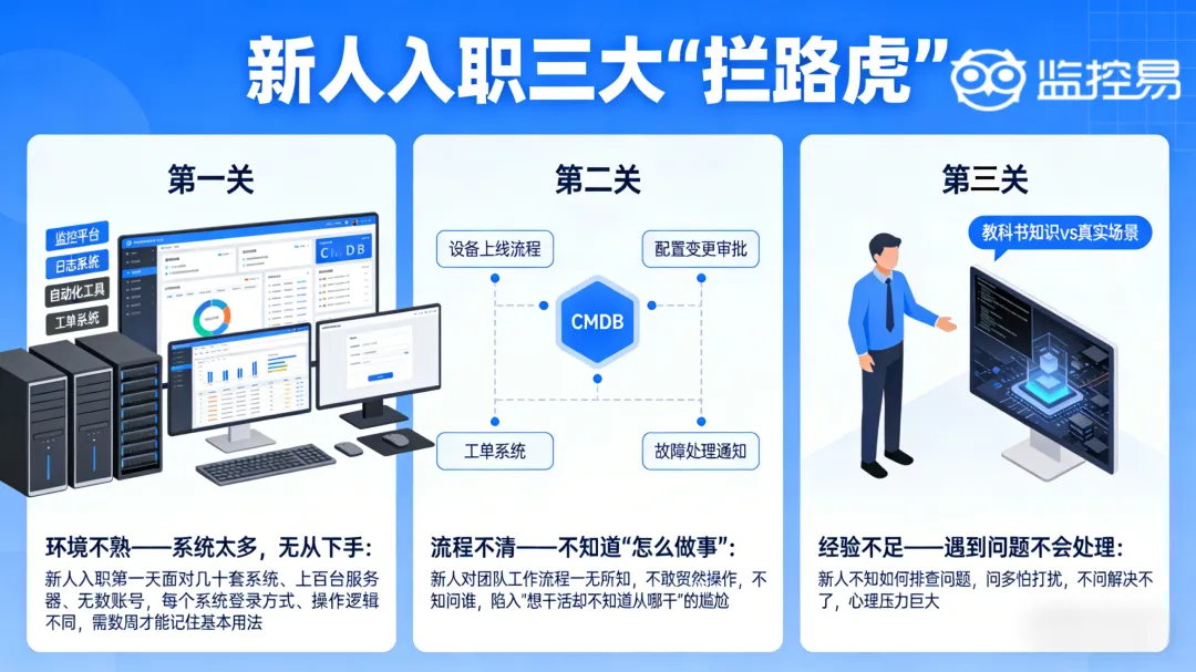 每年毕业季,都有一批新人加入运维团队。他们充满热情,但也充满迷茫:面对复杂的系统架构、繁多的监控工具、严格的变更流程,往往不知从何入手。