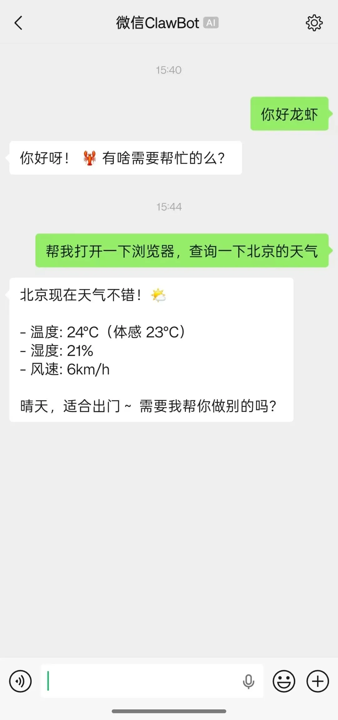 成功安装后,Leo直接在微信与ClawBot机器人私聊,三大核心功能实测流畅,覆盖日常办公与生活需求: