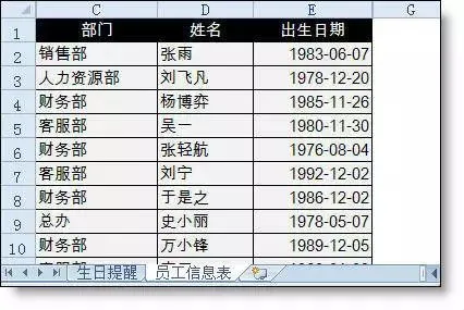 于是,自动生成员工生日提醒的功能即制作完成!