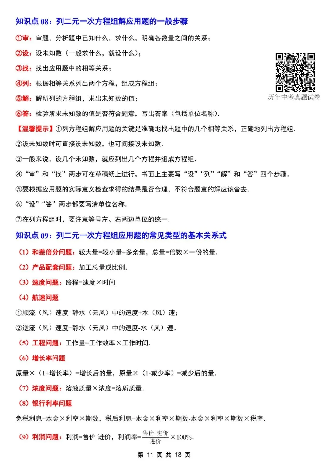 初中数学 七年级下册《知识点梳理》可下载打印(新版)