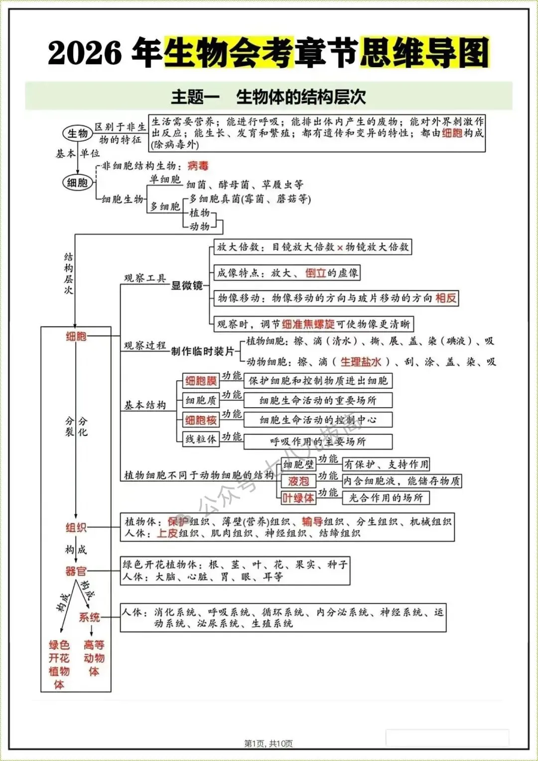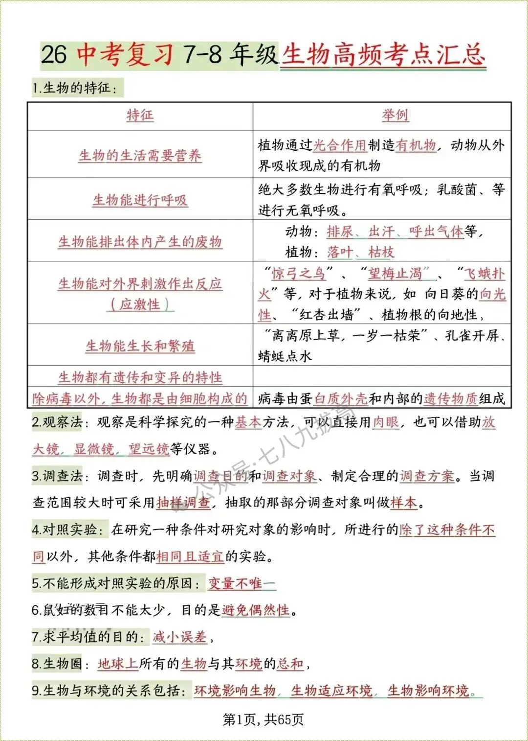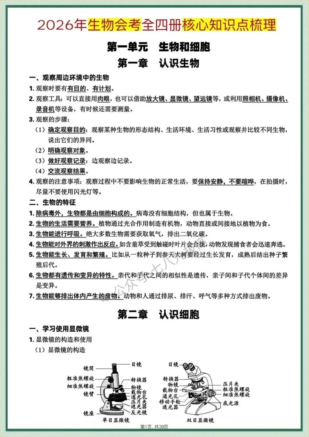 2026初中生物会考知识点总结归(全),打印出来熟练背诵完整电子版,可打印下载!让孩子练一练!为新学期做准备💯