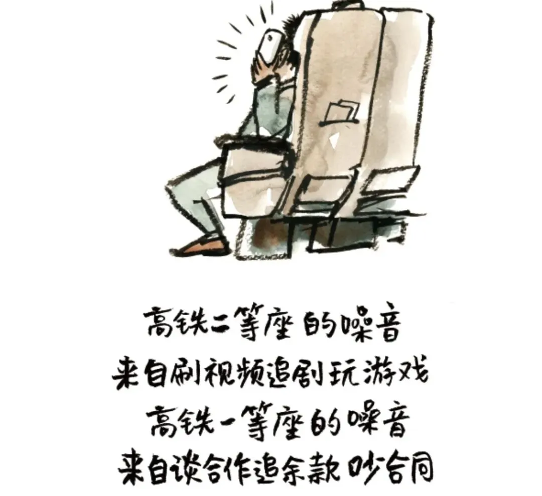 高铁二等座的噪音,来自刷视频追剧玩游戏,高铁一等座的噪音,来自谈合作追余款吵合同😊