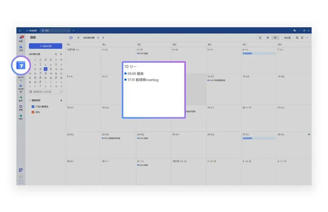 (4)会议日程自动同步日历,提前提醒不遗漏,时间规划更省心。