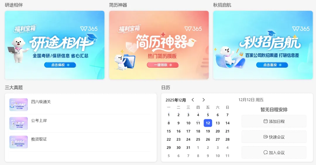 更有秋招专区实时汇总名企校招动态,同步推送面试实战策略等干货,搭配考研 / 推免全量信息、高颜值简历 / PPT 模板,一站式整合学习、备考、求职全场景资源,告别信息碎片化与资源焦虑,助力高效前行!