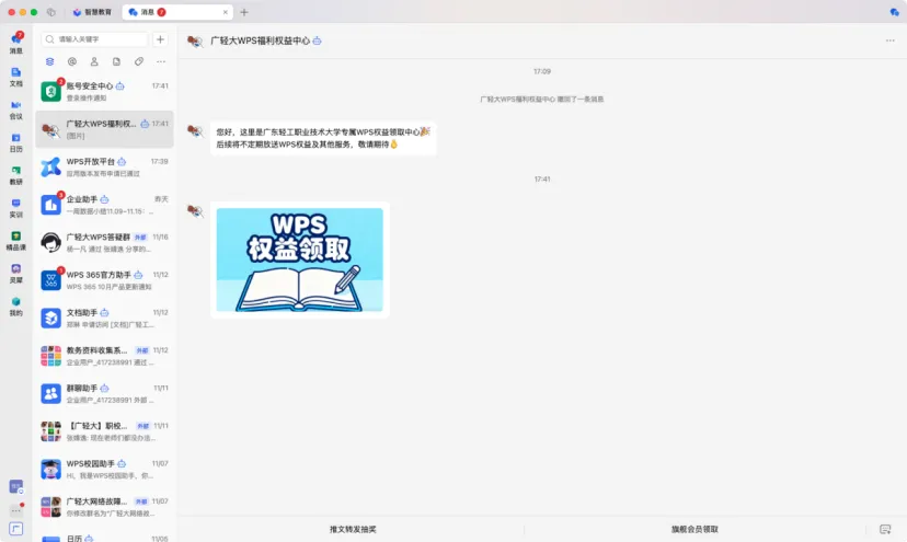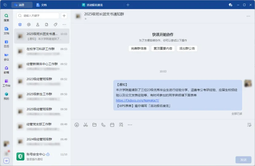 WPS 协作消息功能聚焦校园日常沟通,助力全体师生高效互动: