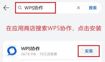 在应用商店中搜索WPS协作进行下载安装