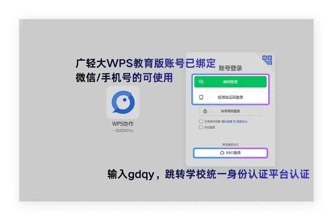 (2)微信/手机号登录(适用于WPS教育版账号已绑定微信/手机号):