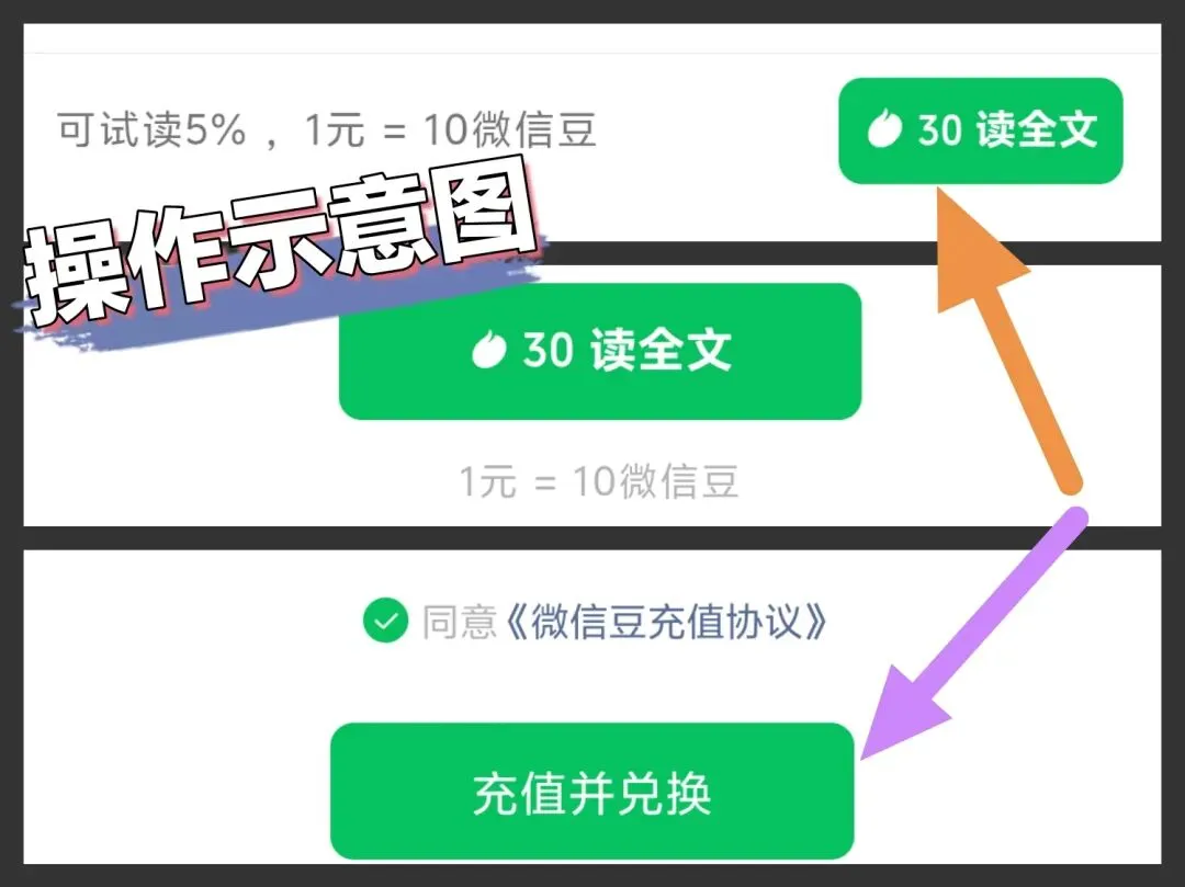 每个解锁篇,下方有个绿色按钮“读全文”,点击“读全文”→微信支付,充值微信豆→再用微信豆兑换文章,即可解锁。