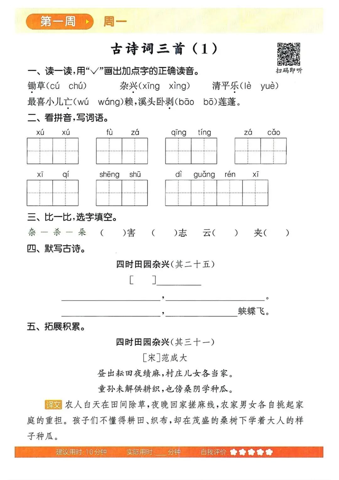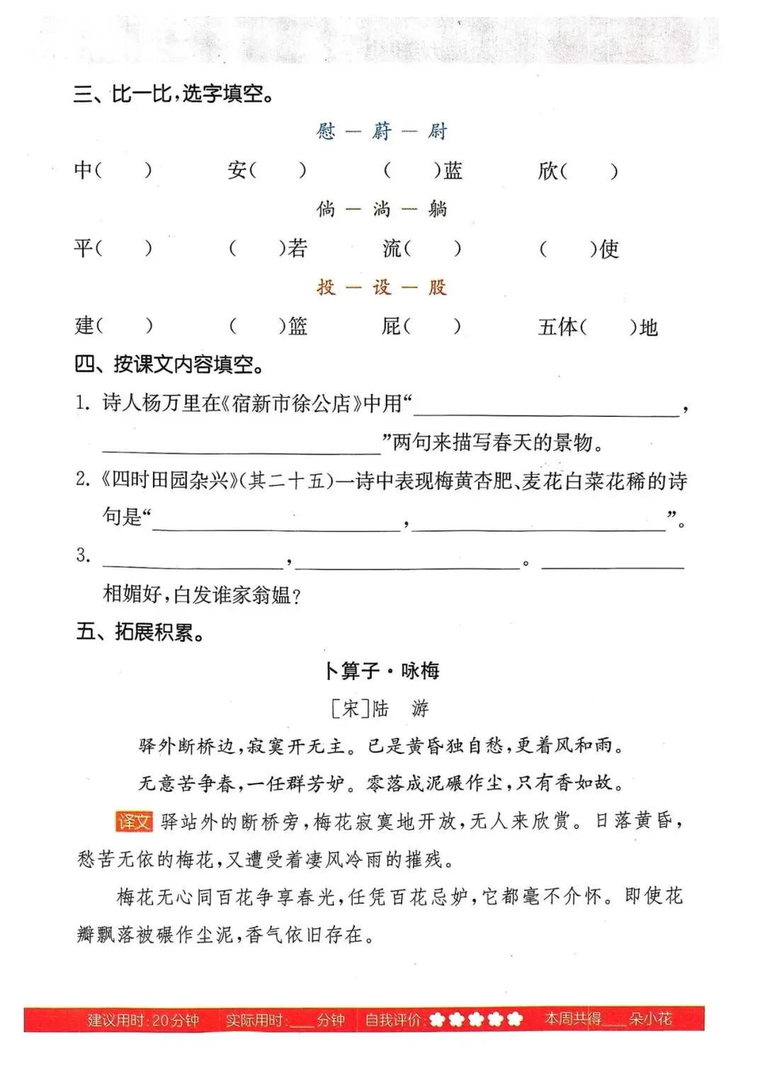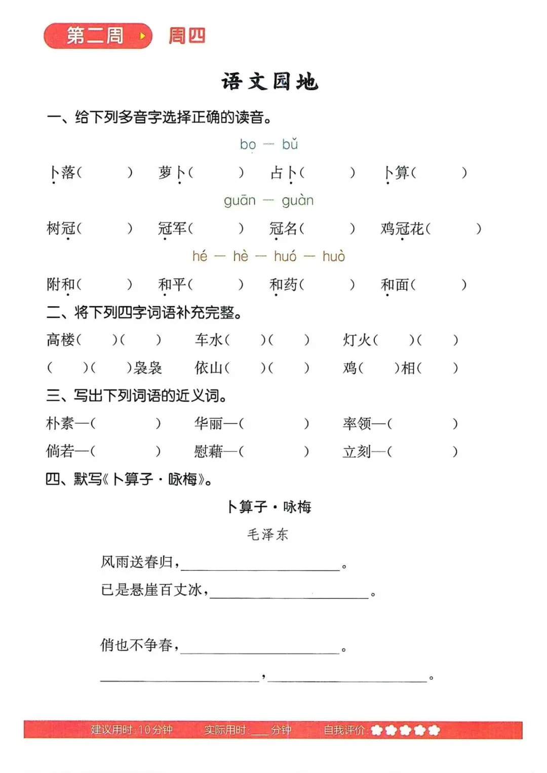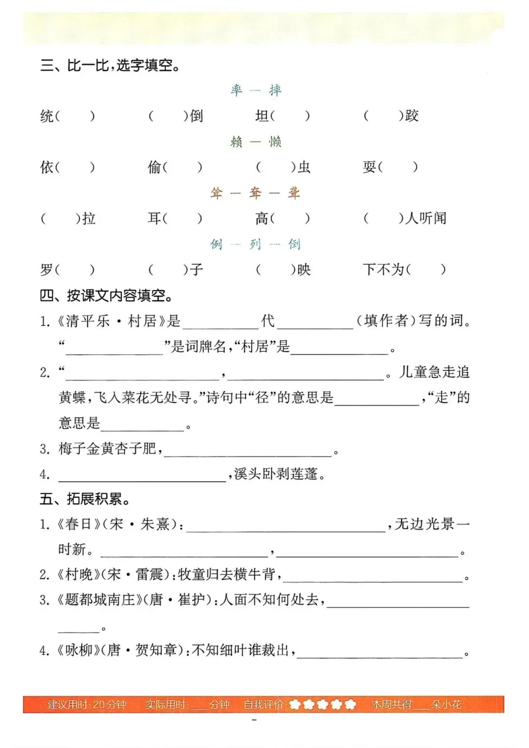 四年级语文下册《默写能手》(领高清PDF打印版)