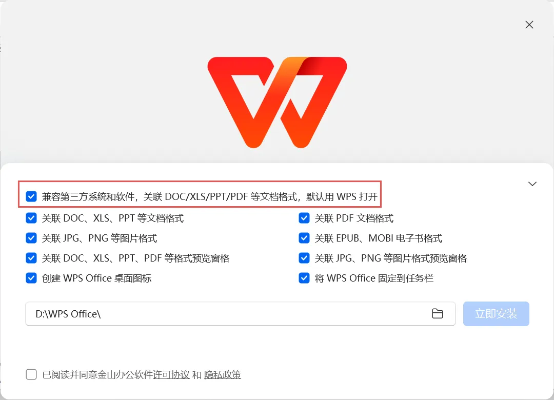 如需要文件不默认使用wps打开,请在安装时点击取消。