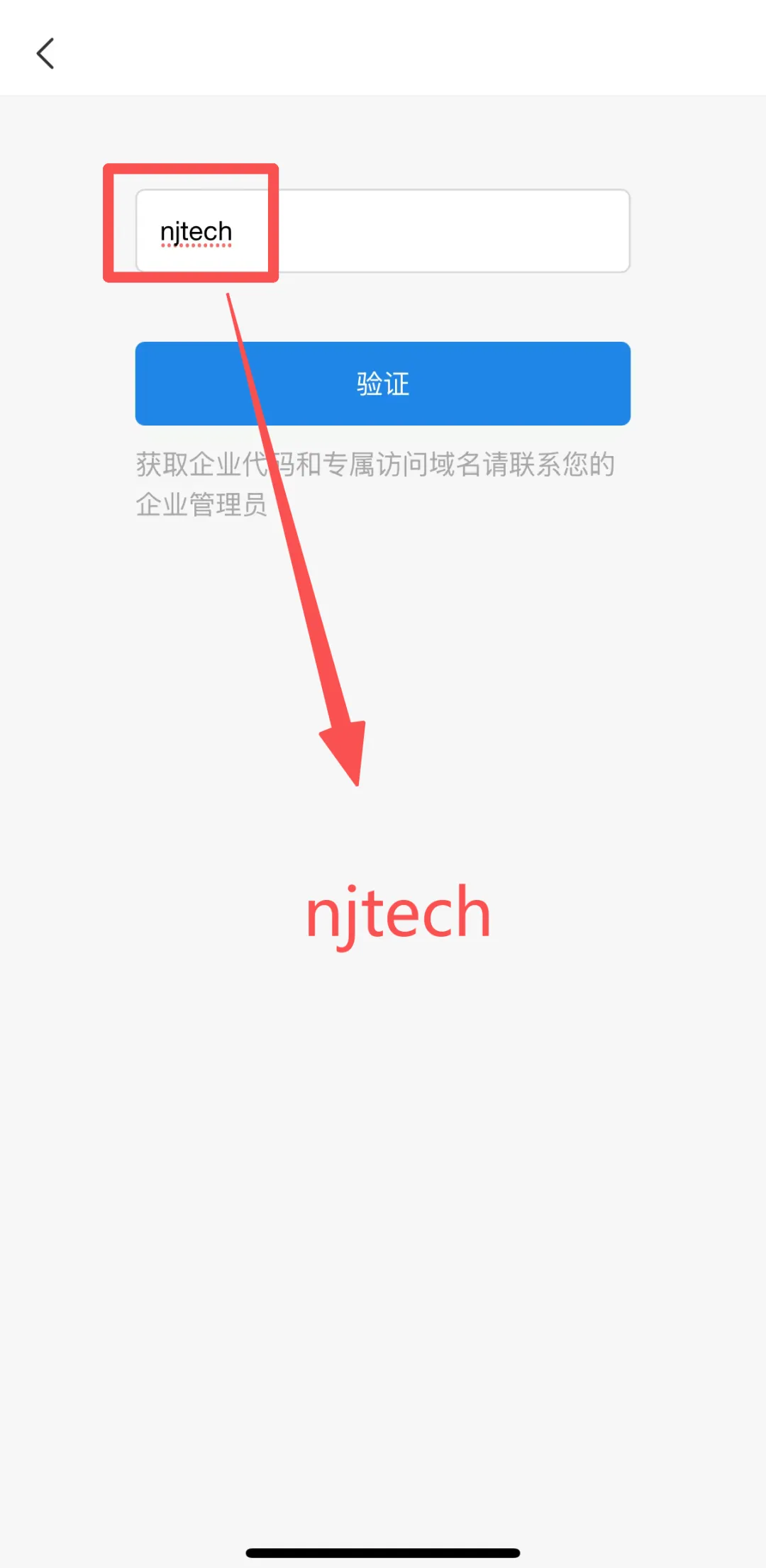 ② 打开WPS协作app,选择「SSO登录」,输入学校代码njtech,点击「验证」,跳转到统一身份认证界面,输入学/工号和密码登录。