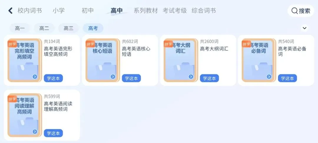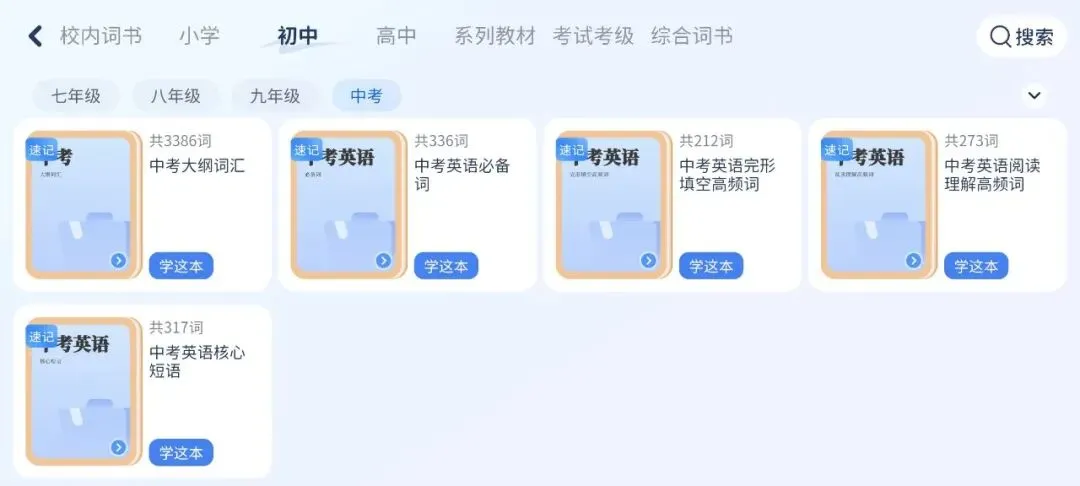 词库是非常非常的丰富!内置了小、初、高、系列教材、考试考级以及综合词书,校内、校外全覆盖。最关键的是我还可以自制词书,这个功能是我最喜欢的。