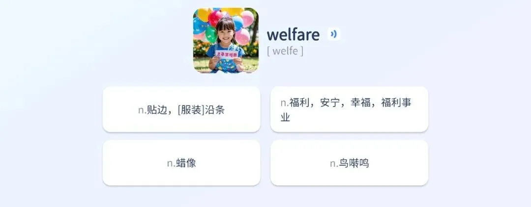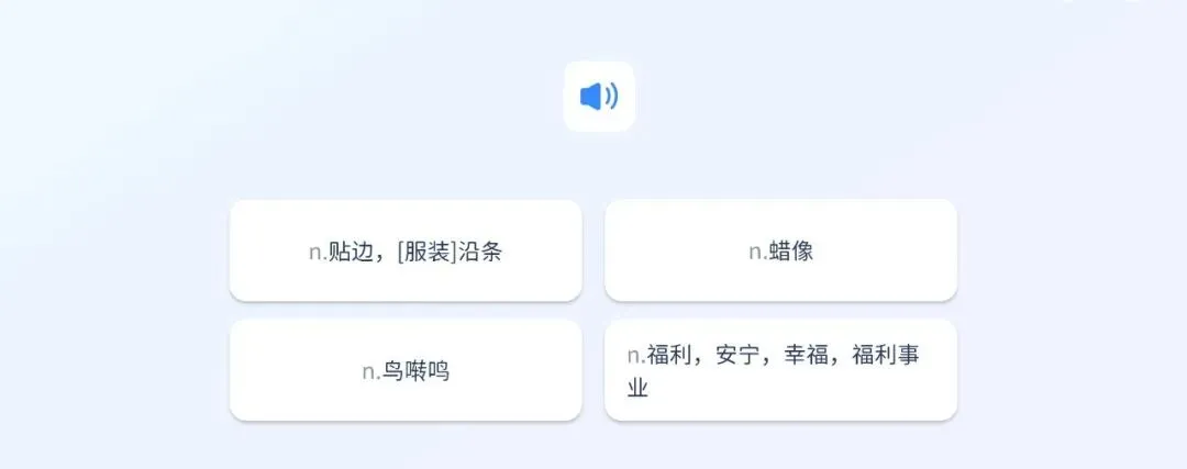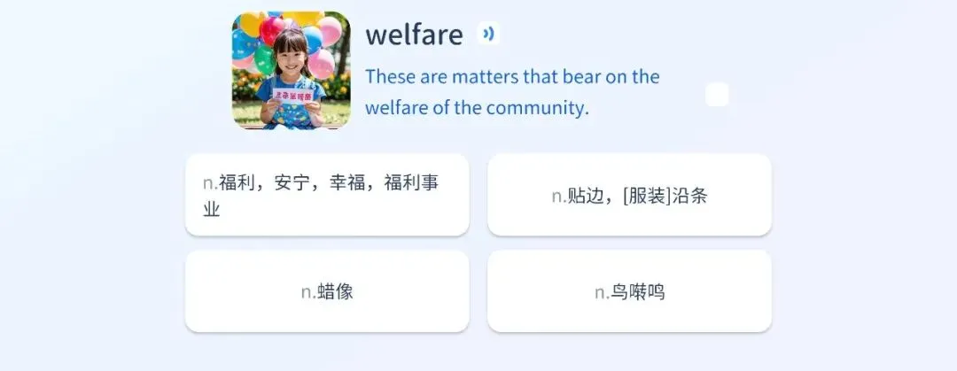 把词放句子里,旁边配图,选词性和中文;