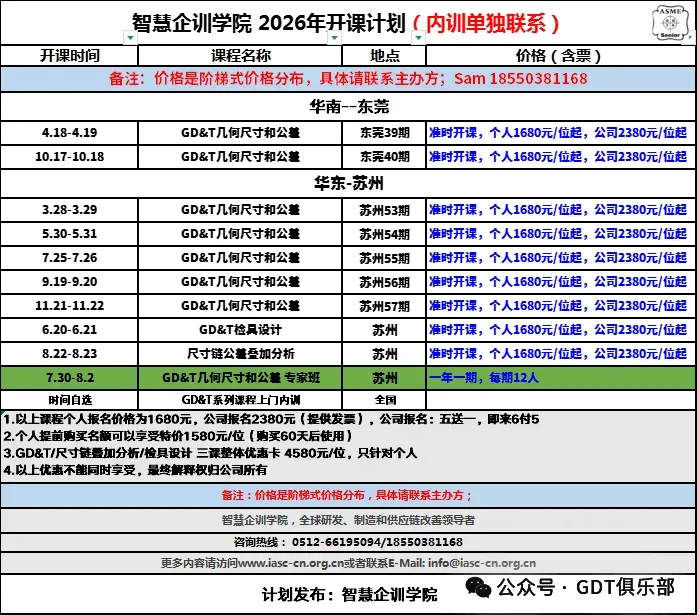 几何尺寸和公差(GD&T)高级培训 苏州站第53期(2026年度第53期) 总第1395期 确定开课