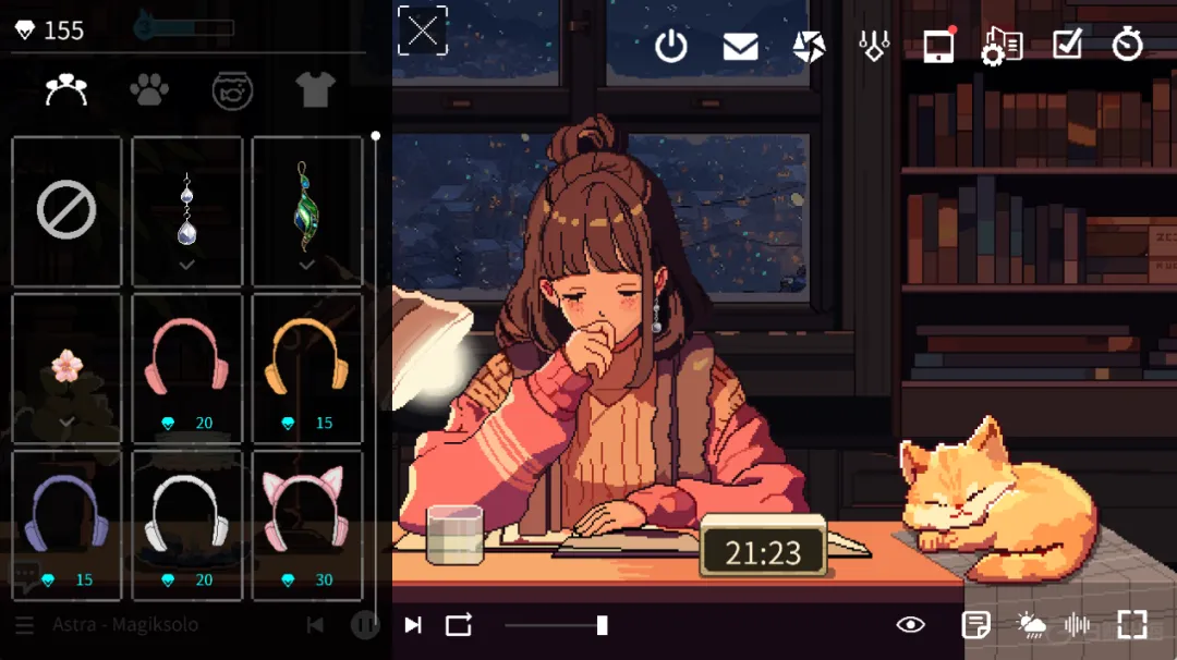 另一款《Spirit City: Lofi Sessions》则走的是治愈奇幻 3D 的视觉风格,这款产品的一大创新在于,除了书桌前的专注场景,还有在床上阅读,在壁炉前织毛线以及在飘窗前清扫等多种选择,给了一些用户在“无屏活动”中也打开游戏的动机。@这里有点奇怪,无屏活动,但是 steam 是 pc 游戏,所以必须打开电脑,整体很违和。