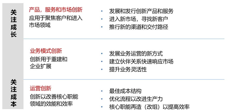 从广泛的资源中过滤想法,通过试点和深入市场的实验探索新想法,谨慎地进行投资和处理资源,以应对行业的变化。