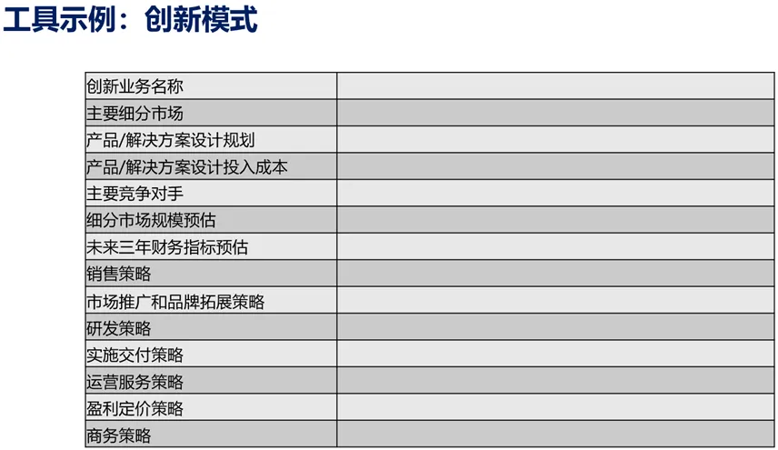 3、创新模式:把创新作为战略思考的焦点,目的是为了获取更多的思路和经验。你准备怎么做,从哪里着手。