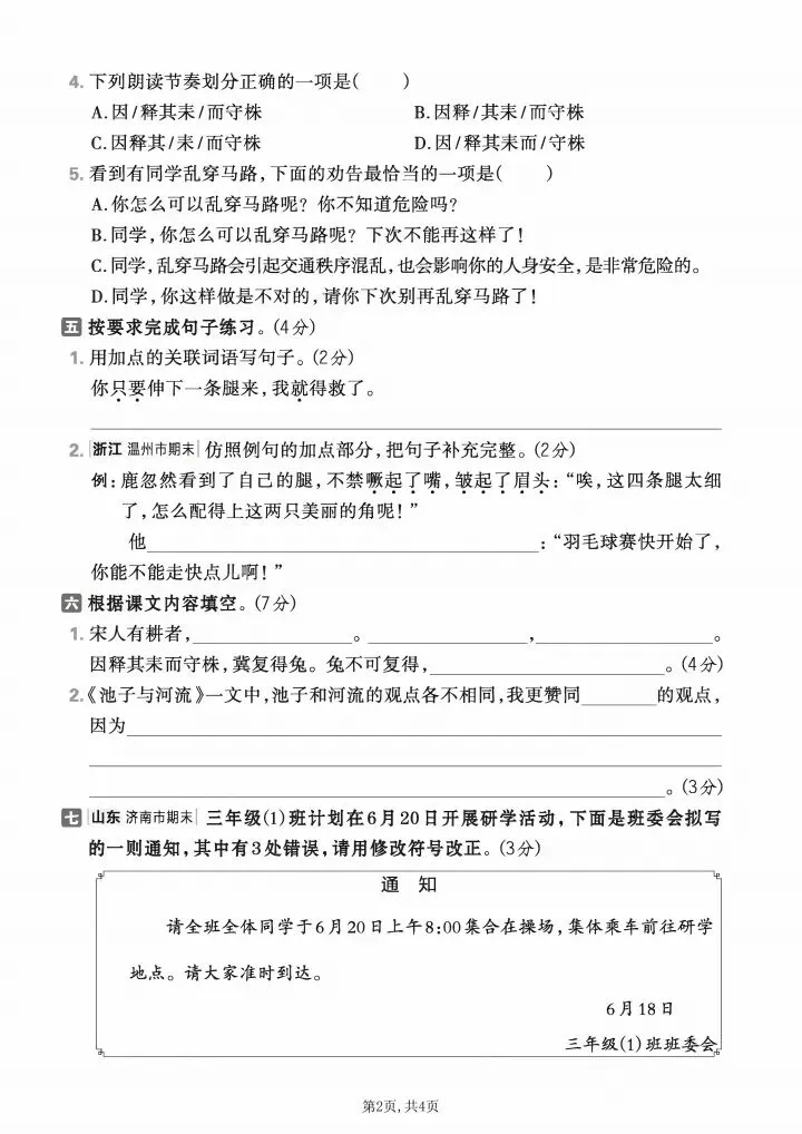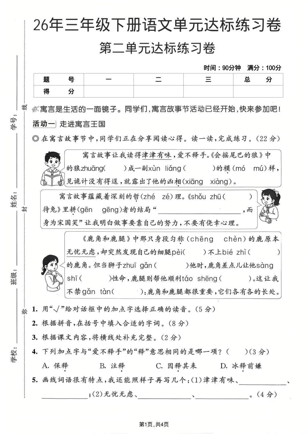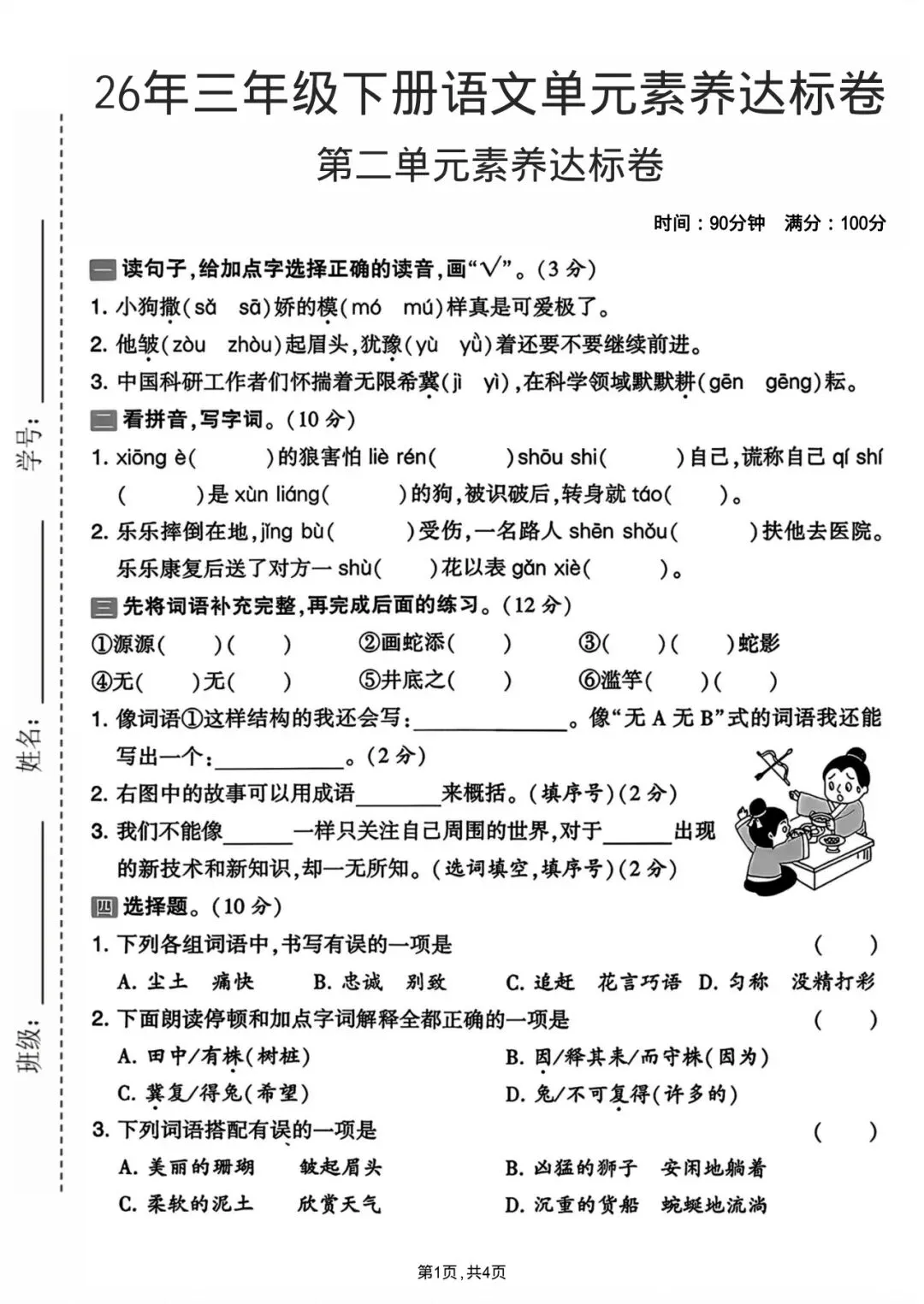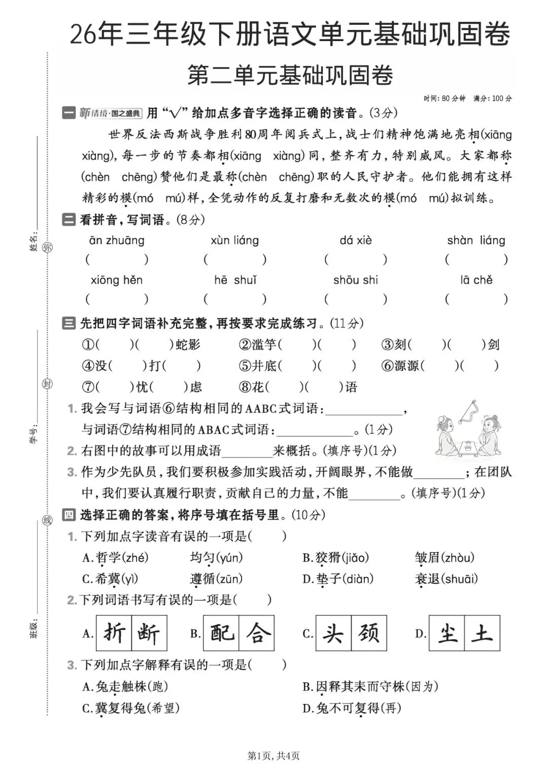 2026年春人教部编版小学三年级下册语文《第二单元拔尖测试卷+质量检测卷》共5套(含答案)-高清可打印