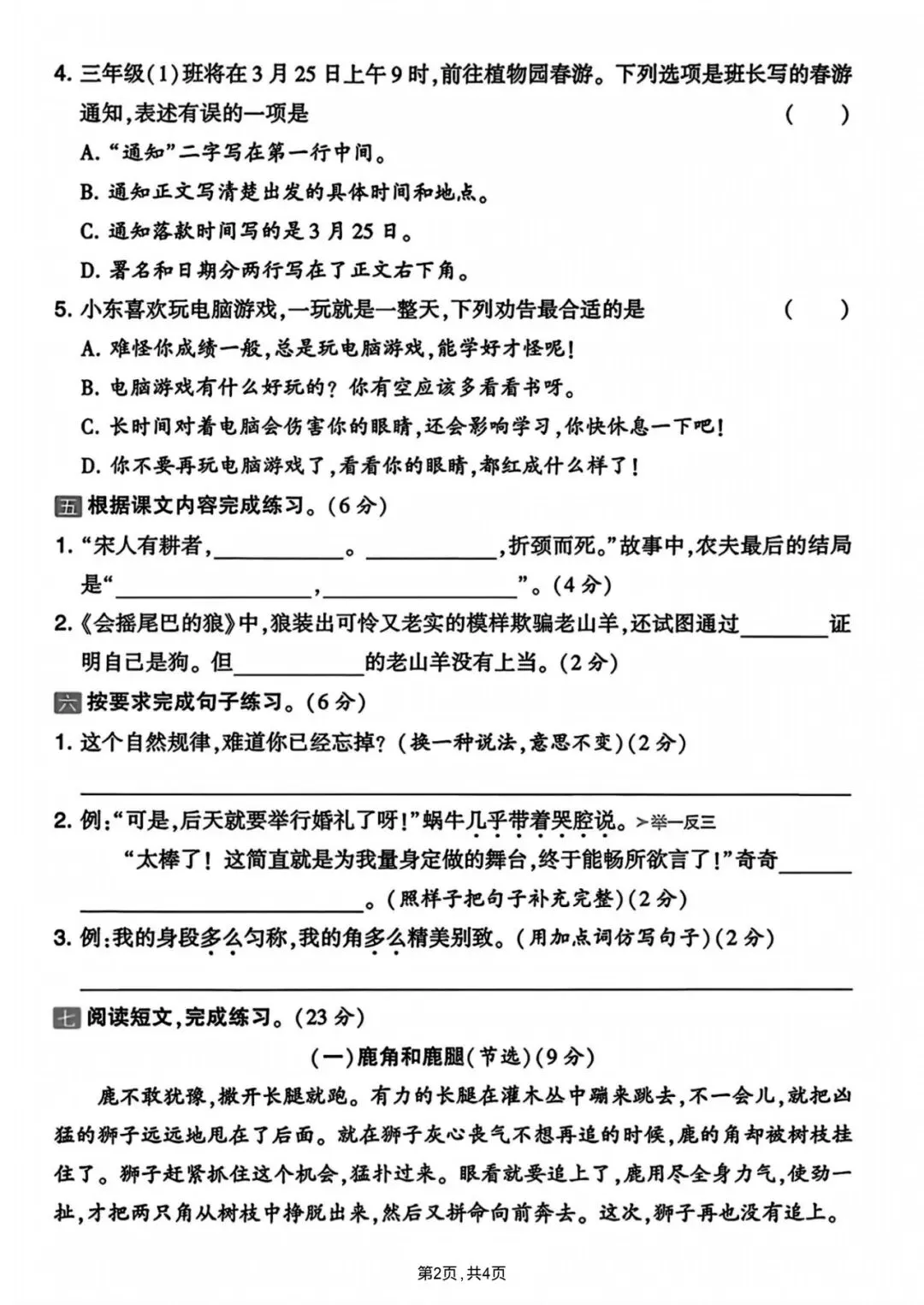 2026年春人教部编版小学三年级下册语文《第二单元拔尖测试卷+质量检测卷》共5套(含答案)-高清电子版可打印